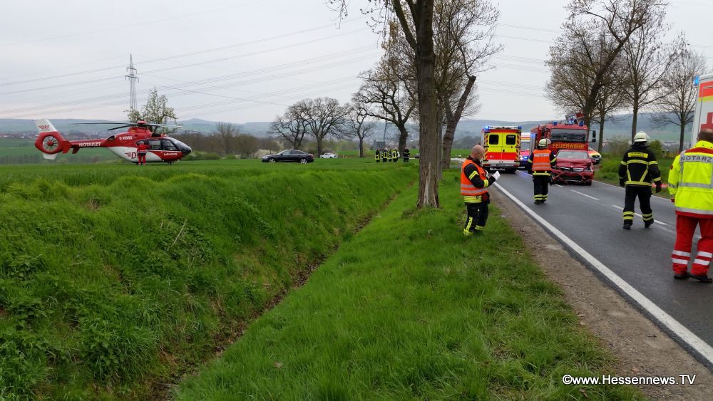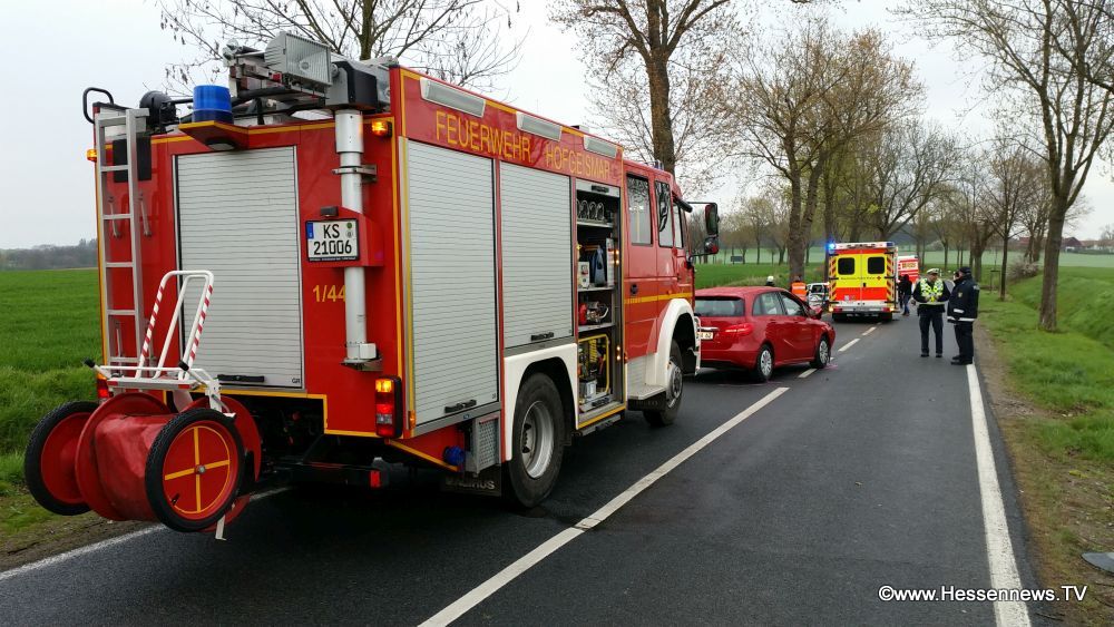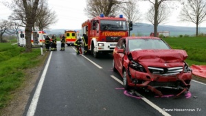 Fahrzeug und geriet in den Gegenverkehr. Der Fahrer eines Mercedes A Klasse konnte nicht mehr ausweichen und beide Fahrzeuge fuhren frontal ineinander. Die sofort zur Unfallstelle gerufenen Einsatzkräfte fanden insgesamt sechs verletzte Personen vor. Sie waren jedoch schon aus den Fahrzeugen befreit und wurden von Ersthelfern betreut. Zwei von Ihnen wurden jedoch so schwer verletzt, das Sie mit den Rettungshubschraubern Christoph 7 und Christoph 44 in Krankenhäuser nach Kassel und Göttingen geflogen werden mussten. Die K 55 musste zwischen der B 83 und Beberbeck voll gesperrt werden. Der auf der K 55 aus Richtung Beberbeck kommende Verkehr wurde über die K 53 nach Hombressen umgeleitet. Zum Einsatz kam die Feuerwehr Hofgeismar und Umgebung, Polizei, sechs Rettungswagen, ein NEF, LNA und OLRD.