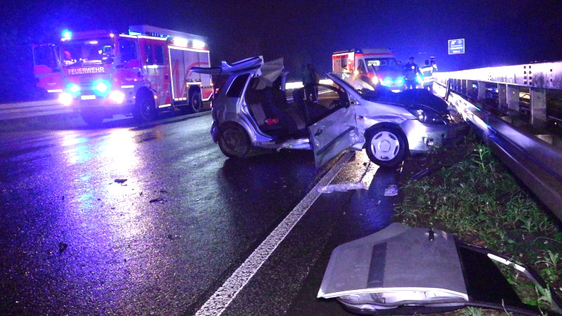 Ein nachfahrender 58-jähriger Audifahrer aus Rüdesheim konnte nicht mehr rechtzeitig bremsen und prallte in den quer stehenden Fiesta. Die Fahrerin des Fiesta wurde im Fahrzeug eingeklemmt und durch die Feuerwehr befreit. Ihr Beifahrer und drei Insassen des Audis wurden bei dem Unfall ebenfalls leicht verletzt. Nach Erstversorgung durch die Rettungskräfte wurden die Verletzten in umliegende Krankenhäuser transportiert. Für die Unfallaufnahme war die Autobahn in Richtung Rüdesheim bis Mitternacht voll gesperrt. Der Verkehr wurde über die B 455 abgeleitet.