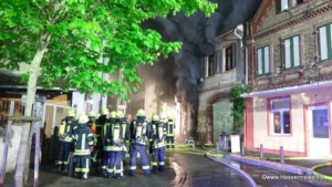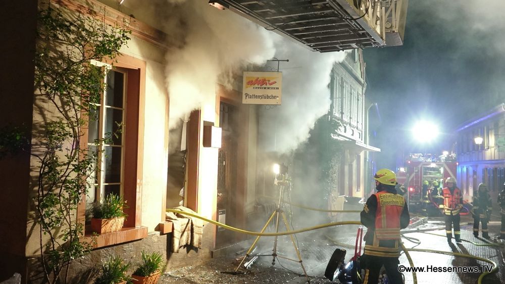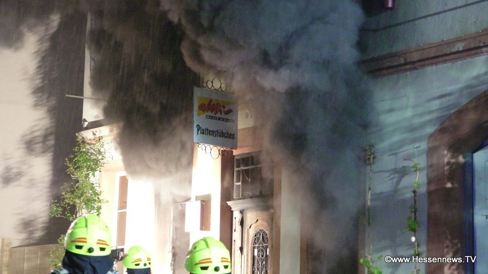 Bad Schwalbach – Gegen 01.30 Uhr meldete eine Anwohnerin der Behlstraße in Geisenheim, dass es im Plattenstübchen brennen würde. Flammen waren deutlich zu erkennen. Bei dem Plattenstübchen handelt es sich um ein denkmalgeschütztes altes Fachwerkhaus, in welchem sich, im Erdgeschoß, unzählige Vinyl-Platten – zum Teil mit Seltenheitswert – befinden. Geschätzt wird die Tonträgersammlung auf rund 65.000 Exemplare. Über den Geschäftsräumen im Erdgeschoss befindet sich das Dachgeschoss, in welchen die Tochter des Geschäftsinhabers und Hauseigentümers mit ihrem Ehemann und den zwei Kindern lebt.