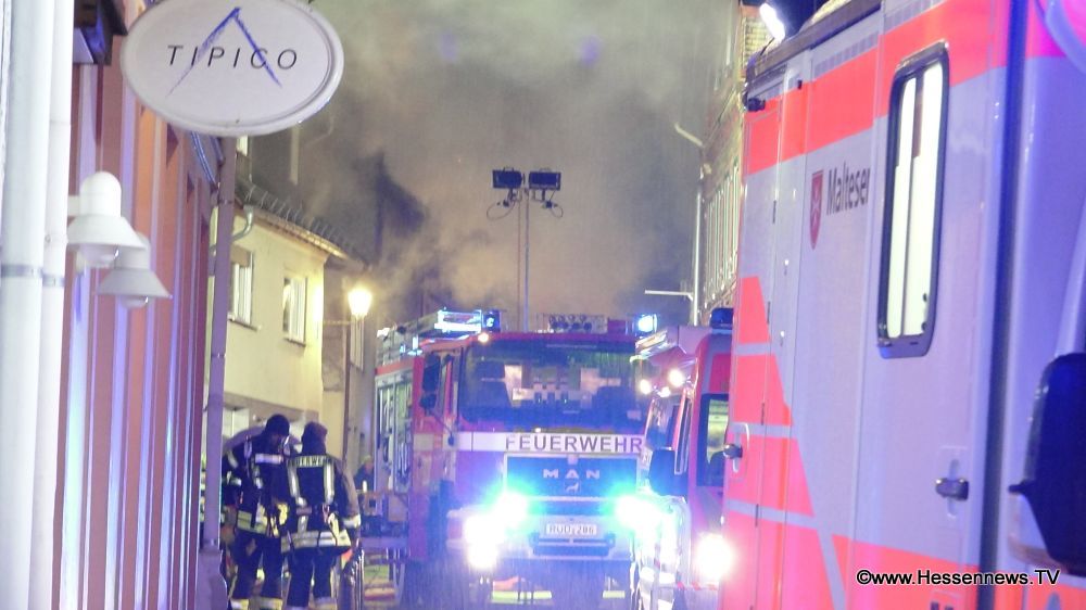 Die Familie bemerkte den Brand und konnte unverletzt das Gebäude verlassen. Bei Eintreffen der Feuerwehr stand das Gebäude in Vollbrand Erste Ermittlungen ergaben, dass sich der Brandherd im Technikraum des Lagers befindet. Durch den Brand und die Löscharbeiten kam es zu einer erheblichen Rauchentwicklung welche teilweise die komplette Kernstadt einhüllte. Die Bürger wurden durch Lautsprecherdurchsagen und Rundfunkwarnmeldung auf den Brand hingewiesen und gebeten Türen und Fenster geschlossen zu halten. Aus den unmittelbar angrenzenden Häusern wurden die Anwohner evakuiert, zentral untergebracht und betreut. Der Gebäudeschaden wird auf 300.000 Euro geschätzt. Die Plattensammlung wurde durch den Brand zerstört. Hier wird der Schaden auf 260.000 Euro geschätzt Die Kriminalpolizei Wiesbaden hat die Ermittlungen aufgenommen.