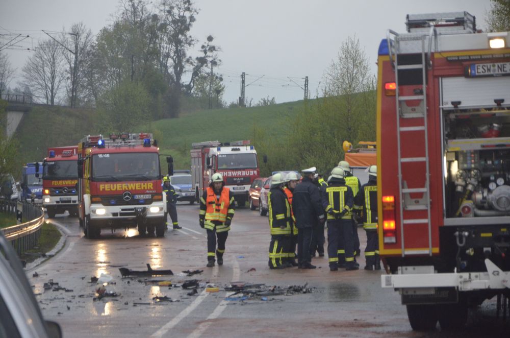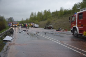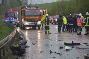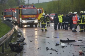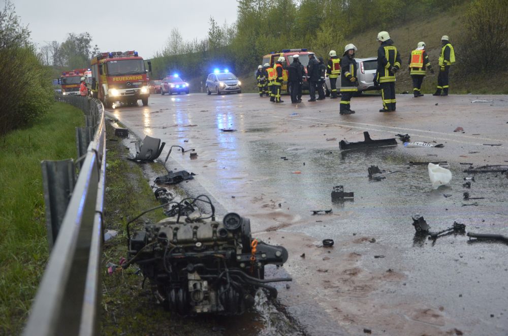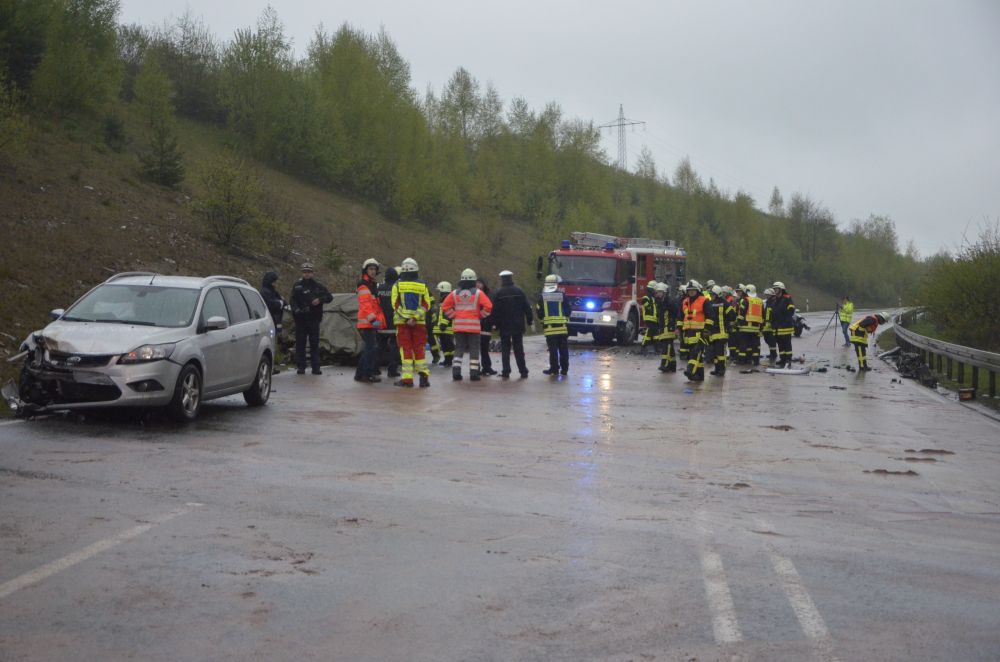 Zwei Rettungsteams und zwei Notärzte versorgten die Verletzten. Die K40 war für rund zweieinhalb Stunden voll gesperrt. Die Unfallursache wird ermittelt. Am Fahrzeug enstand Totalschaden in noch unbekannter Höhe.