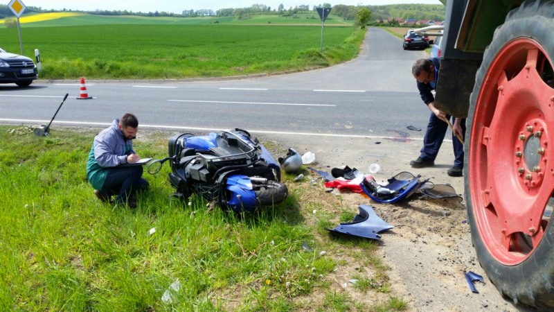 Fritzlar – Am Donnerstag gegen 11.30 Uhr kam es auf der B450 in Höhe Haddamar zu einem schweren Verkehrsunfall zwischen einer landwirtschaftlichen Zugmaschine und einem Motorroller. Der 63-Jährige Motorrollerfahrer wurde hierbei tödlich verletzt. Ein 46-Jähriger Fritzlarer befuhr mit seiner landwirtschafltichen Zugmaschine den „Prinzenweg“ in Richtung B 450.