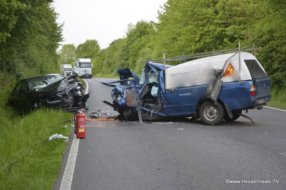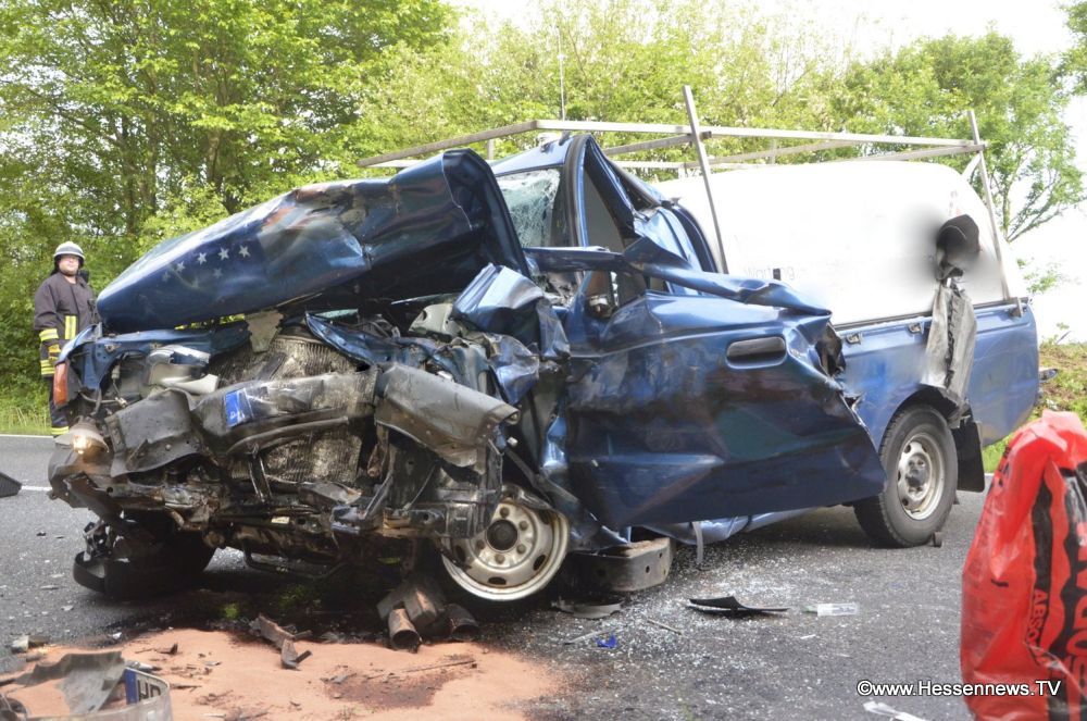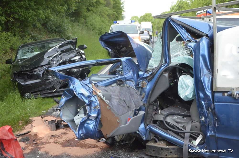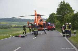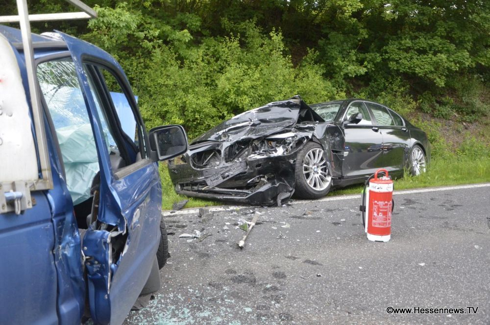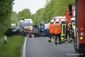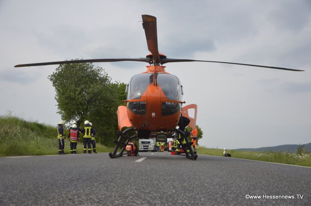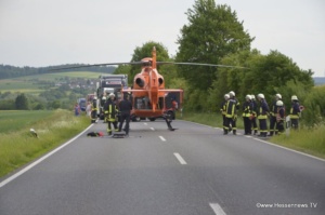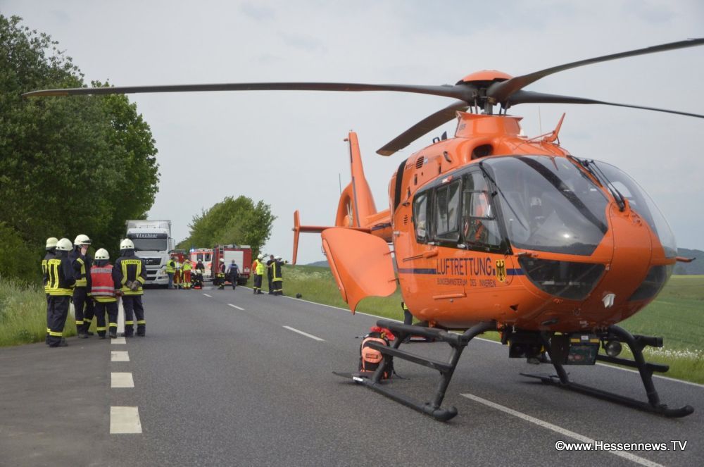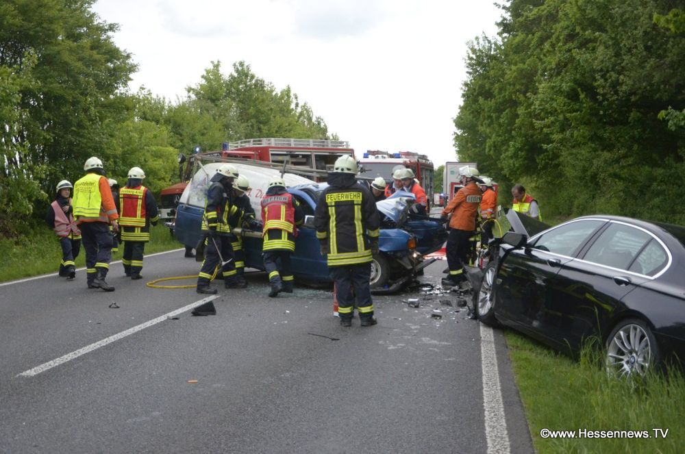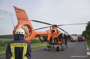 Im weiteren Verlauf krachte der Borkener frontal in einen entgegenkommenden BMW, der von einem 60 jährigen aus Bad Zwesten gesteuert wurde. Durch die Wucht des Zusammenpralls wurde der BMW-Fahrer verletzt, konnte aber glücklicherweise ohne technische Hilfe aus seinem Fahrzeug gerettet werden. Der 21 jährige Borkener wurde in seinem Fahrzeug eingeklemmt und lebensbedrohlich Verletzt. Die Feuerwehr aus Jesberg musste ihn zügig mit hydraulischen Geräten befreien. Insgesamt waren drei Rettungswagen, zwei Notärzte sowie die Besatzung des Rettungshubschraubers Christoph 7 vor Ort im Einsatz. Während der 21 Jährige in ein Kasseler Krankenhaus geflogen wurde, brachten zwei Rettungswagen die beiden Unfallbeteiligten in umliegende Krankenhäuser. Während der Rettungs- und Gutachtermaßnahmen war die Bundesstraße voll gesperrt. Über die Höhe des Sachschadens lag bislang noch keine Information vor.