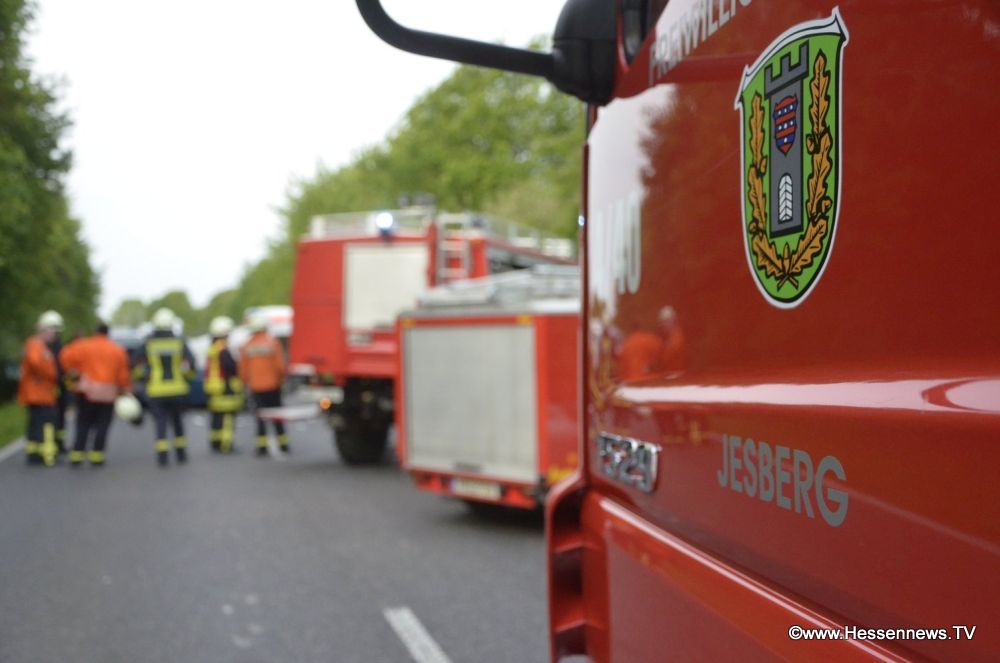Jesberg – Auf der Bundesstraße 3, zwischen Jesberg und Bad Zwesten (Schwalm-Eder-Kreis) kam es am frühen Dienstagabend bei einem schweren Verkehrsunfall, bei dem drei Fahrzeugführer zum teil lebensbedrohlich Verletzt wurden. Nach ersten Erkenntnissen von der Unfallstelle, geriet ein 21-jährigen Borkener aus bislang ungeklärten Umständen in Fahrtrichtung Kassel mit seinem Kleinwagen in den Gegenverkehr. Dabei kollidierte er zunächst seitlich mit einem LKW, der von einem 54 Jahre alten Mann aus Wetzlar gesteuert wurde.