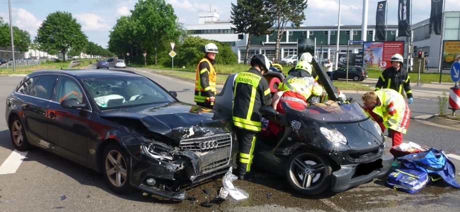 Hierbei missachtete er den Vorrang eines entgegenkommenden Audi-Fahrers, der den Geradeausfahrstreifen der Sandershäuser Straße aus Richtung Hannoversche Straße, in Richtung Leipziger Straße befuhr. Es kam zum Zusammenstoß, bei dem beide Fahrer verletzt wurden. Der Unfallverursacher musste durch Rettungskräfte aus seinem PKW gerettet werden. Beide Fahrzeuge waren nicht mehr fahrbereit und mussten abgeschleppt werden. Der Sachschaden wird auf 13.000 Euro geschätzt. Bedingt durch die Bergungsarbeiten musste der Verkehr bis 18:05 Uhr umgeleitet werden, so dass es zu erheblichen Verkehrsbehinderungen im Berufsverkehr kam.
