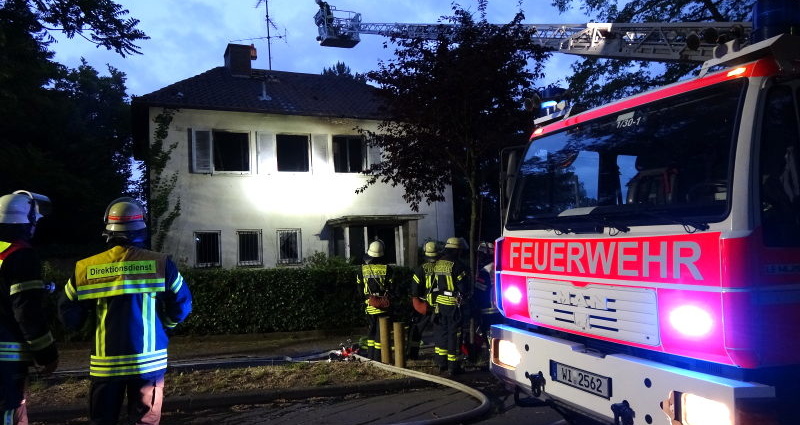 Wiesbaden – Am Mittwoch gegen 4 Uhr wurde die Feuerwehr zu einem Gebäudebrand in der Schumannstraße alarmiert. Beim Eintreffen der ersten Kräfte stand das Erdgeschoss bereits in Vollbrand, Flammen schlugen aus dem Fenster des 1. Obergeschosses. Mehrere Trupps durchsuchten im Innenangriff das Gebäude und brachten den Brand schnell unter Kontrolle.