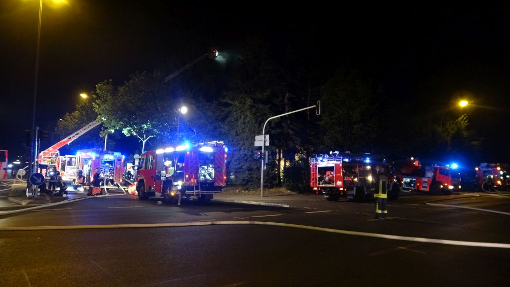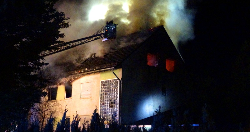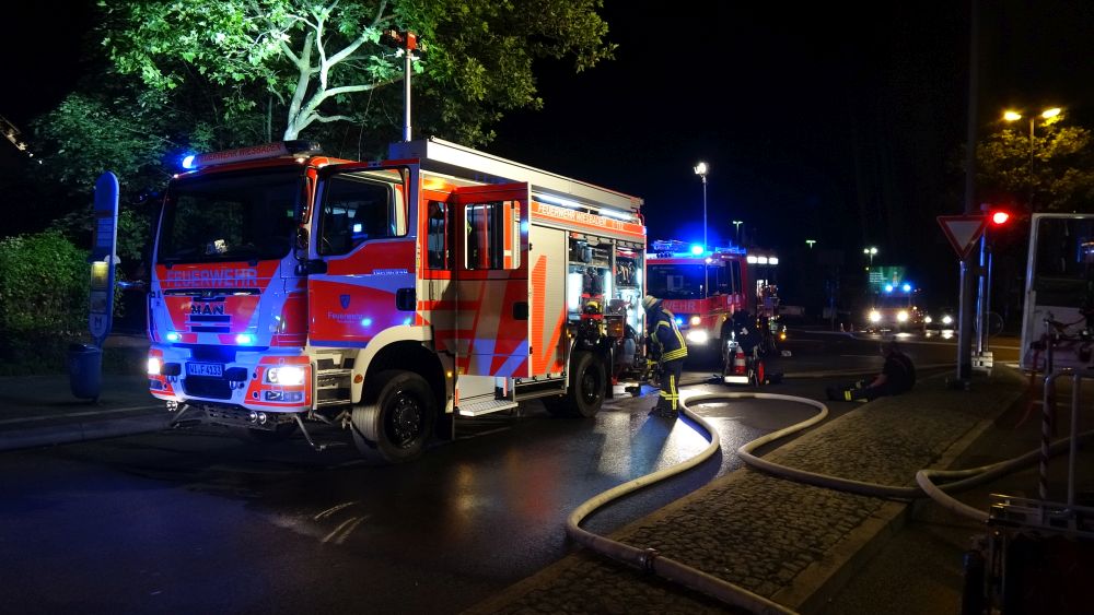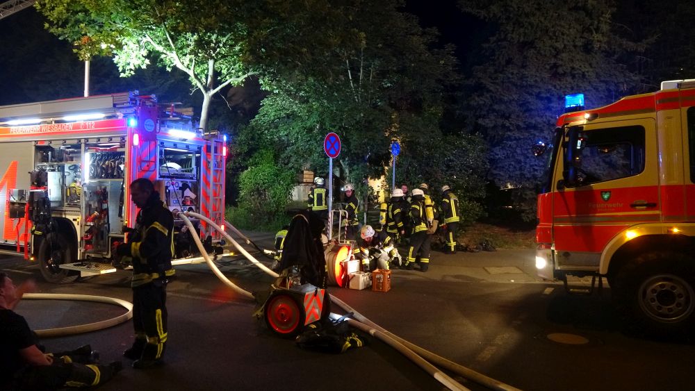 Wiesbaden – Gegen 23 Uhr wurde die Feuerwehr über mehrere Notrufe zu einem Gebäudebrand in der Boelckestraße alarmiert. Bereits beim Eintreffen der erstalarmierten Kräfte standen das 1. Obergeschoss und das ausgebaute Dachgeschoß in Vollbrand. Die anwesenden 15 Bewohner konnten sich rechtzeitig ins Freie retten. Für die Brandbekämpfung waren 38 Kräfte der Berufsfeuerwehr Wiesbaden und den Freiwilligen Feuerwehren Mainz-Kastel und Mainz-Kostheim im Einsatz.