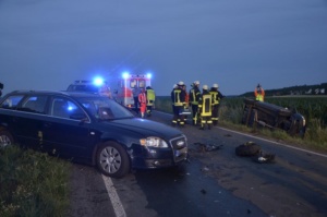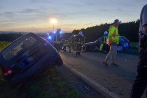 Durch die Wucht des Zusammenpralls riss von dem Fahrzeug der Borkenerin das linke Vorderrad ab. Anschließend drehte sie sich mit ihrem Fahrzeug um die eigene Achse und kam im Straßengraben auf der Fahrerseite liegend zum Stillstand. Während der Fritzlarer und seine Beifahrerin nahe zu unverletzt blieben, wurde die junge Frau vom Rettungsdienst schwer, aber glücklicherweise nicht lebensbedrohlich, verletzt in ein Kasseler Krankenhaus gebracht. Neben dem Rettungsdienst und der Polizei war auch die Feuerwehr aus Borken vor Ort im Einsatz, da zunächst von einer eingeklemmten Person ausgegangen wurde. Ersthelfer konnten die junge Frau noch vor Eintreffen der Feuerwehr aus ihrem Fahrzeug befreien. Die Landstraße war währen der Rettungs- und Bergungsmaßnahmen voll gesperrt. An beiden Fahrzeugen entstand Totalschaden in Höhe von rund 15.000 Euro.