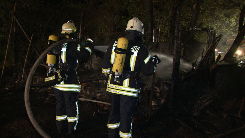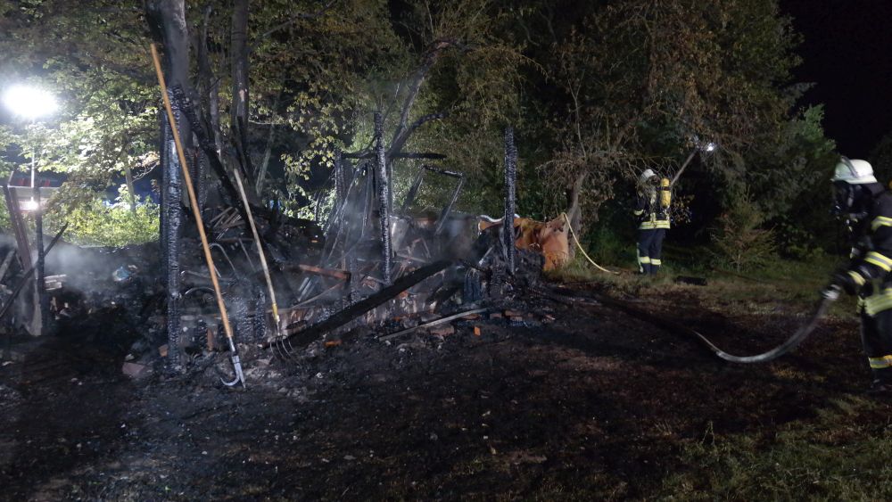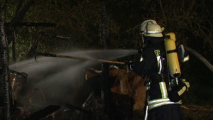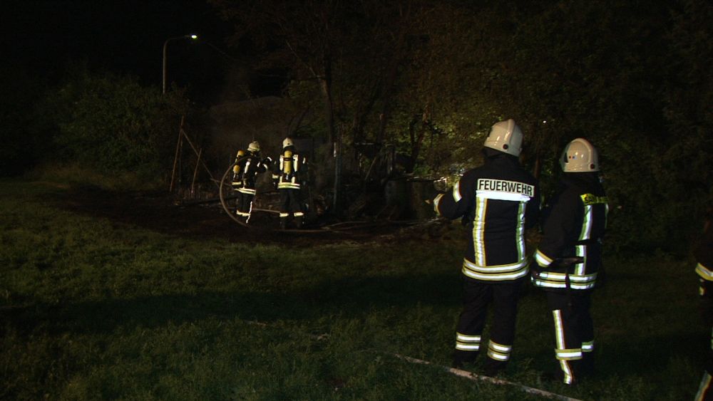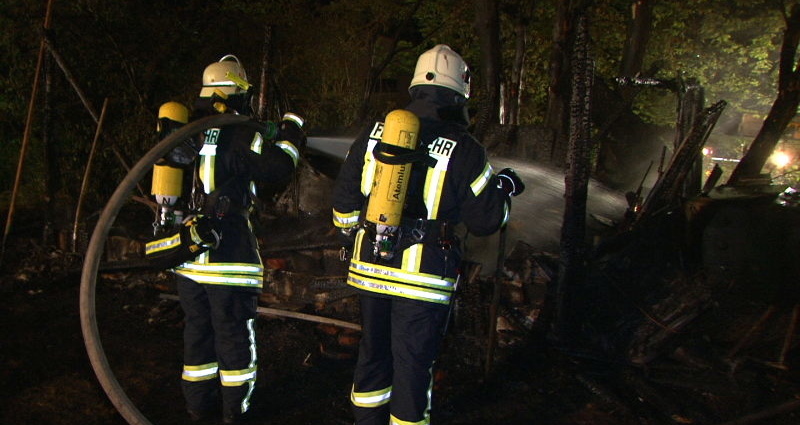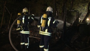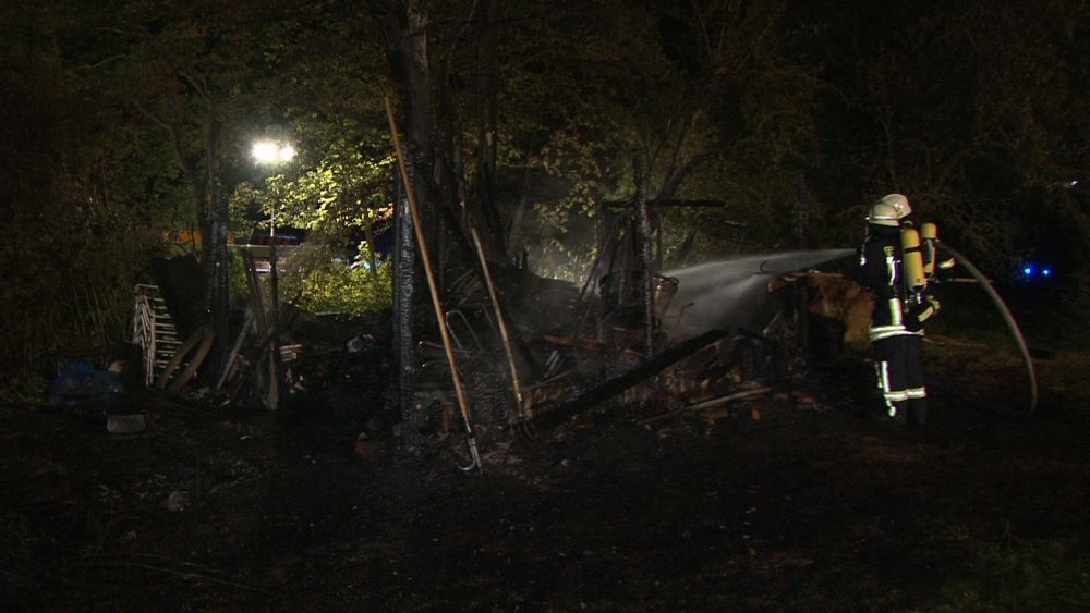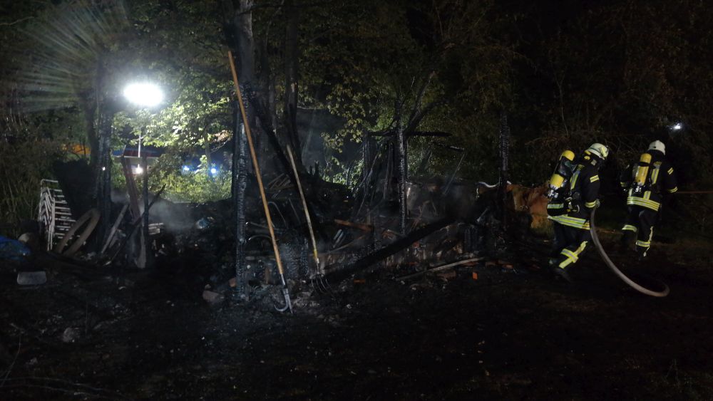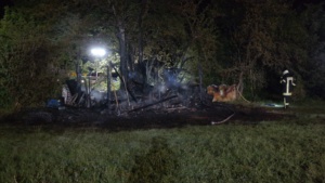 Bad Emstal – In der Nacht zum Samstag kam es erneut zu einem Brand im Ortsteil Balhorn. Gegen 0.13 Uhr ging der Anruf in der Leitstelle ein, das es in der Fritzlarer Strasse brennt. Sofort wurden die Einsatzkräfte alarmiert und tatsächlich brannte eine etwa 25m² große Gartenhütte in voller Ausdehnung. Auch die in der Nähe stehenden Bäume hatten schon Feuer gefangen. Durch den schnellen Einsatz der Feuerwehr, konnte der Brand jedoch schnell gelöscht werden.