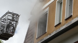 Ein Trupp unter Atemschutz ging in das Gebäude vor und konnte den Brand in der Küche löschen, ein zweiter Angriffsweg wurde über die Drehleiter aufgebaut. Nachdem der Brand gelöscht war, wurde das Gebäude belüftet. Aufgrund der starken Rauchvergiftung wurden 5 Personen verletzt, sie wurden von mehreren DRK Rettungsteams mit Notarzt versorgt und zum Teil ins Krankenhaus gebracht. Die Kreuzung Biegenstraße / Hopfelderstraße war für die Dauer der Lösch- und Belüftungsmaßnahmen für den Verkehr gesperrt. Im Einsatz waren 35 Feuerwehrkräfte mit 6 Fahrzeugen, 3 Rettungswagen und ein Notarztwagen mit 7 Einsatzkräften und die Polizei.