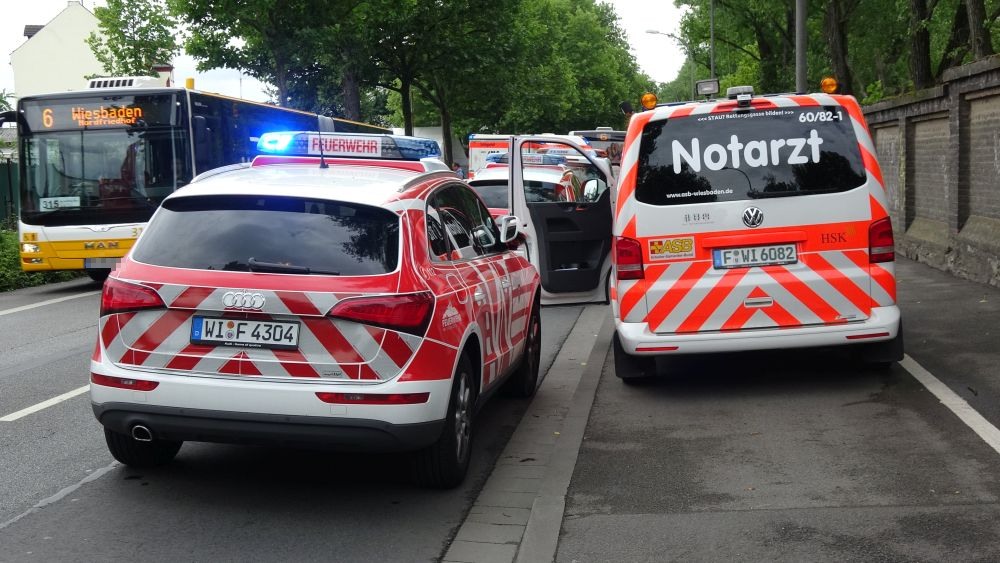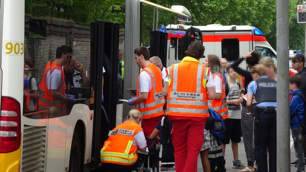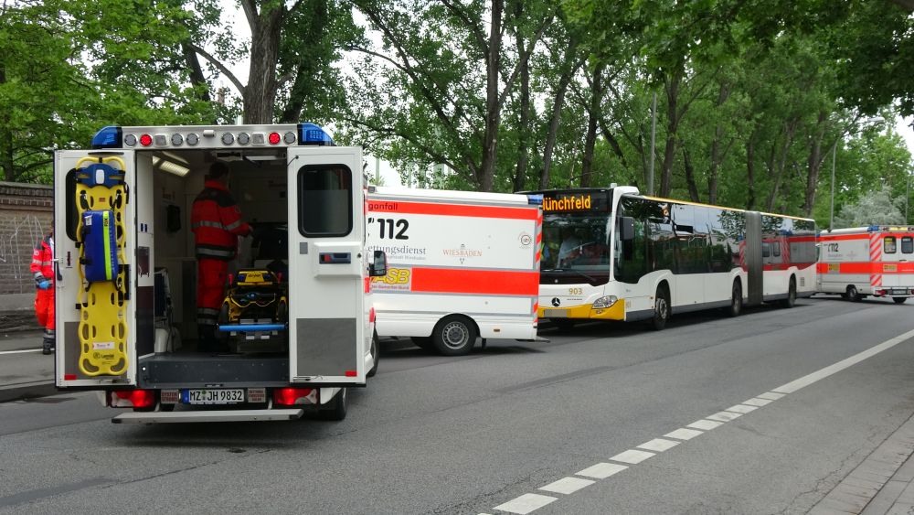 Wiesbaden – Gegen Mittwochmittag erreichten mehrere Notrufe die  Leitstelle der Berufsfeuerwehr Wiesbaden. Diese meldeten  mehrere Verletzte in Folge eines Verkehrsunfalls mit einem beteiligten Linienbus in der Wiesbadener Landstrasse.  Aufgrund der erhöhten Verletztenanzahl wurden drei Rettungswagen, ein Notarzteinsatzfahrzeug, die Einsatzleitung Rettungsdienst sowie der Einsatzleitdienst der Berufsfeuerwehr alarmiert.