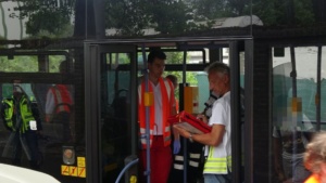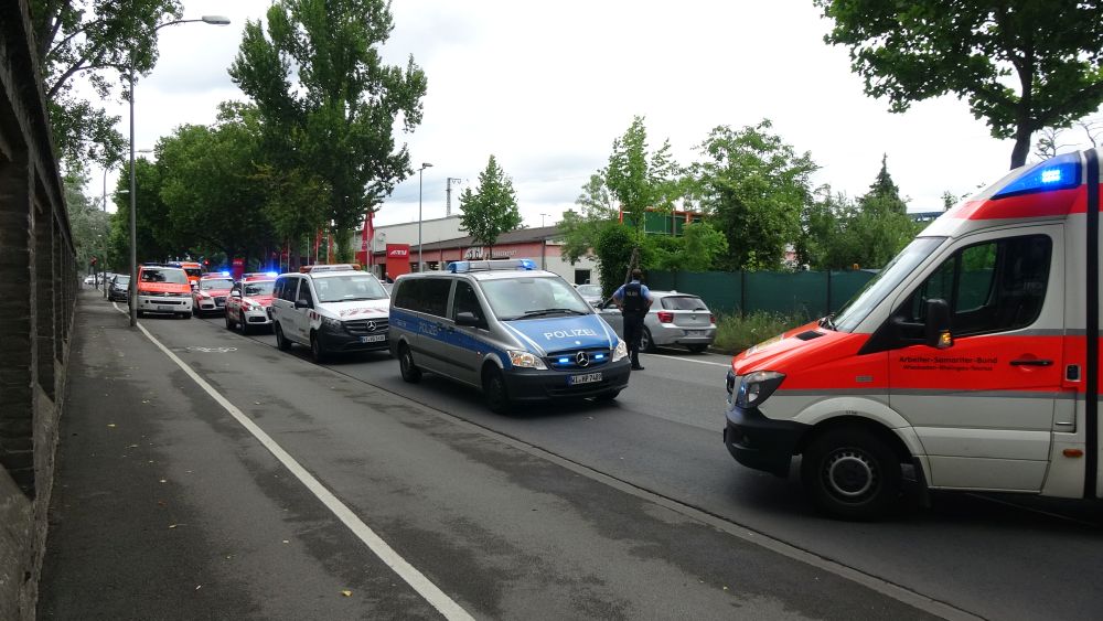 Der mit rund 130 Personen besetzter Gelenkbus der Stadtwerke Mainz musste infolge eines Überholmanövers eines PKW eine Notbremsung durchführen, infolgedessen sich insgesamt 10 Personen verletzten. Drei der Verletzten konnten nach ambulanter Versorgung vor Ort entlassen werden. Fünf Personen wurden mit leichten Verletzungen, zwei Personen mit mittelschweren Verletzungen durch den Rettungsdienst versorgt, und in Kliniken in Wiesbaden und Mainz transportiert. Insgesamt waren fünf Rettungswagen und ein Notarzt in den Einsatz eingebunden. Trotz der großen Anzahl an Fahrgästen ging der Einsatz Glücklicherweise noch relativ glimpflich aus.