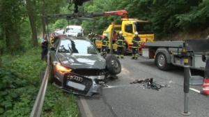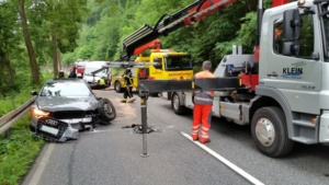 Das entgegenkommende Fahrzeug wurde von einer 41-jährigen Frau gefahren. Sie wurde wie der Unfallfahrer schwer verletzt nach einer Erstversorgung an der Unfallstelle in ein Krankenhaus eingeliefert. Warum der Fahrer in den Gegenverkehr gekommen ist kann noch nicht gesagt werden. Während der Unfallaufnahme musste die B3 komplett gesperrt werden. Der Sachschaden wird sehr hoch eingestuft da der Audi erst einen Monat alt ist. Insgesamt geht man von rund 80.000.- Euro aus.