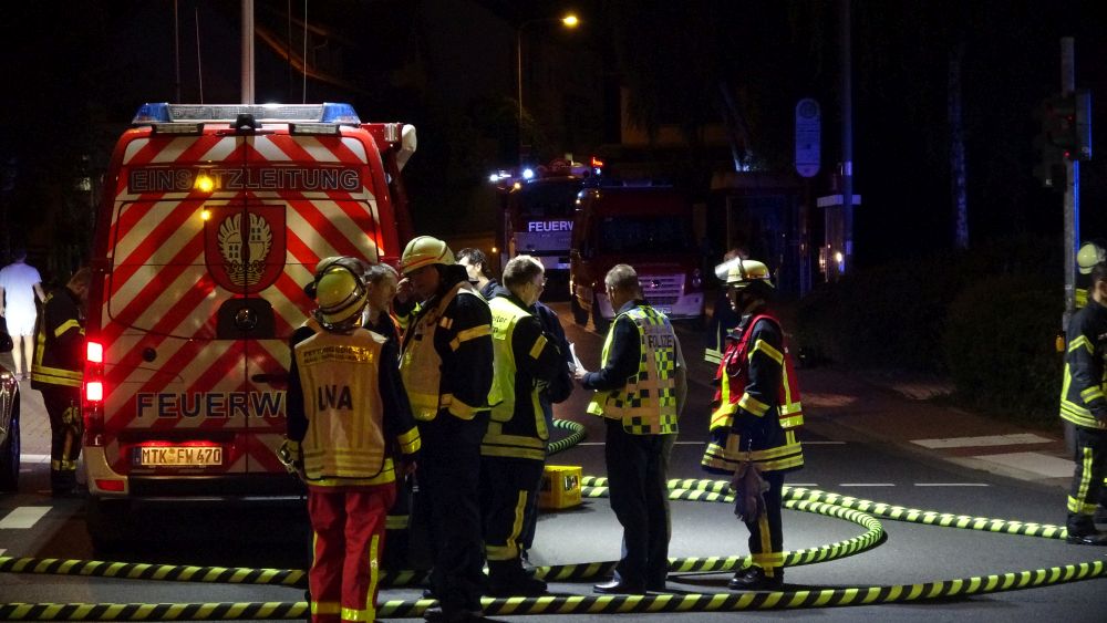 Hofheim – Am Mittwochmorgen gegen 01:45 Uhr wurde der Leitstelle Main-Taunus durch eine 31jährige Bewohnerin des Hauses in der Steinbacher Straße in Eschborn-Niederhöchstadt mitgeteilt, dass es in ihrer Wohnung brennen würde. Umgehend wurden Feuerwehr und Polizei nach dort entsandt. Vor Ort konnte festgestellt werden, dass die Wohnung der Mitteilerin in Vollbrand stand. Die umliegenden Wohnungen des 6-Parteien-Wohnhauses und die angrenzenden Wohnhäuser wurden vorsorglich geräumt, während die Löscharbeiten im Gange waren. Die Wohnung der Mitteilerin wurde durch den Brand stark in Mitleidenschaft gezogen. Durch den Brand erlitt die Mitteilerin eine Rauchgasvergiftung und Verbrennungen.