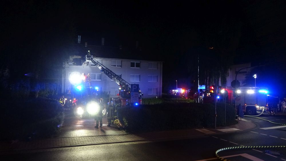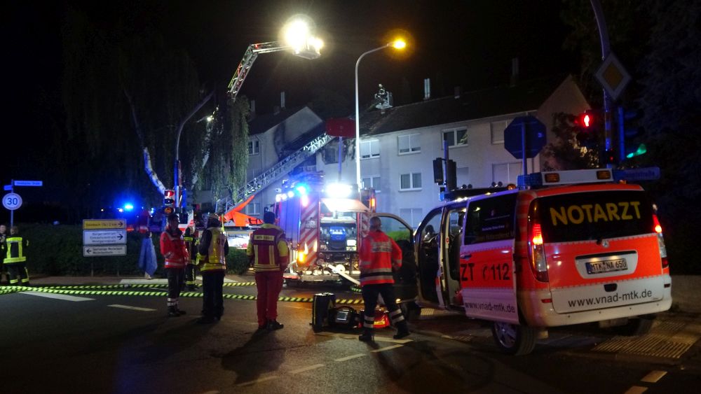 Sie wurde in eine Spezialklinik eingeliefert. Eine weitere 79jährige Bewohnerin des Hauses erlitt eine leichte Rauchgasvergiftung und wurde vorsorglich ins Krankenhaus verbracht. Nach ersten Erkenntnissen war eine brennende Kerze in der Wohnung der Mitteilerin ursächlich für den Brand. Die Brandursachenermittlung hat die Kriminalpolizei in Hofheim übernommen Am Haus entstand ein Schaden von rund 300.000 Euro. Die Arbeiten durch das THW zur Absicherung am Dachstuhl dauern derzeit an.