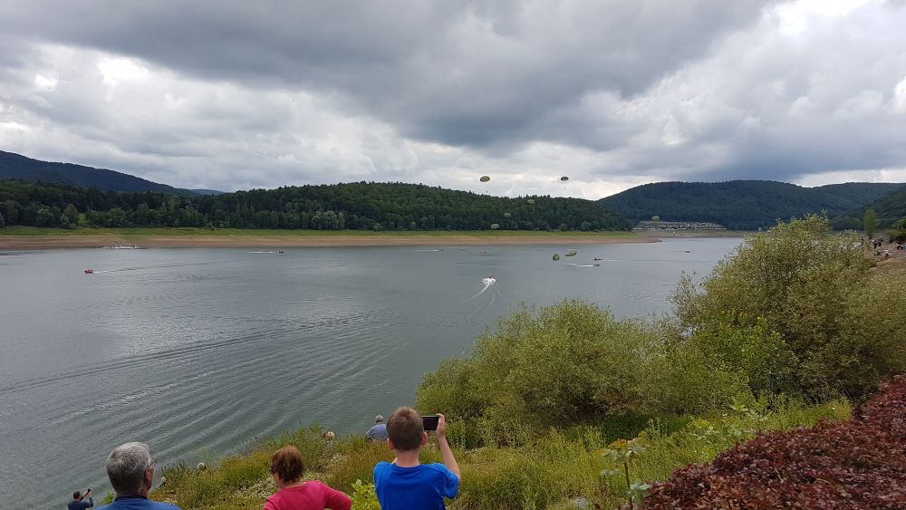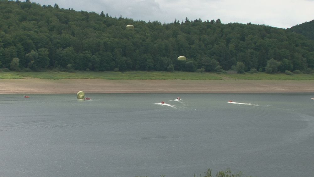 Insgesamt waren drei Tage dafür angesetzt. Am Ende blieb es bei nur einem Flug und insgesamt 12 Soldaten die über dem See in die Tiefe sprangen und, bis auf einen Soldaten, im Wasser landeten. Der Grund lag in der Sicherheit. Zunächst waren die Windbedingungen nicht optimal. Im weiteren Verlauf führte der See immer weniger Wasser, so dass die eigentliche Sprungzone des Sees fast mehr aus Land als aus Wasser bestand.