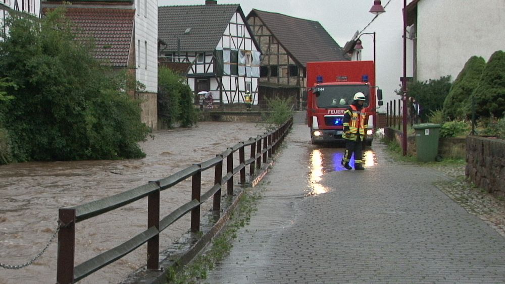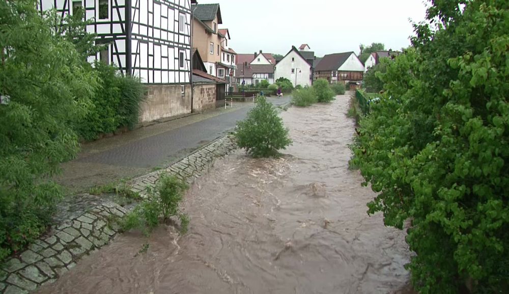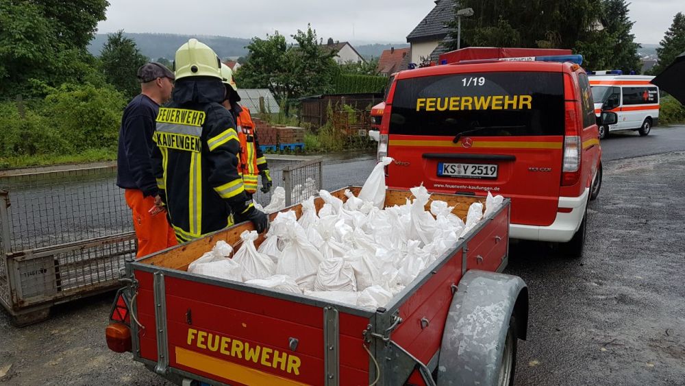 Kassel – Aktuell spielt das Wetter verrückt. Erst schönster Sonnenschein, dann Gewitter mit Unwetterpotential und nun tagelang anhaltender Regen. Kleine Bäche werden aktuell zu reißenden Flüssen. An vielen Stellen wir hier in Kaufungen sind die Uferbereiche schon unter Wasser. Mit Sandsäcken versuchen die Bewohner die noch steigenden Wasserstände unter Kontrolle zu