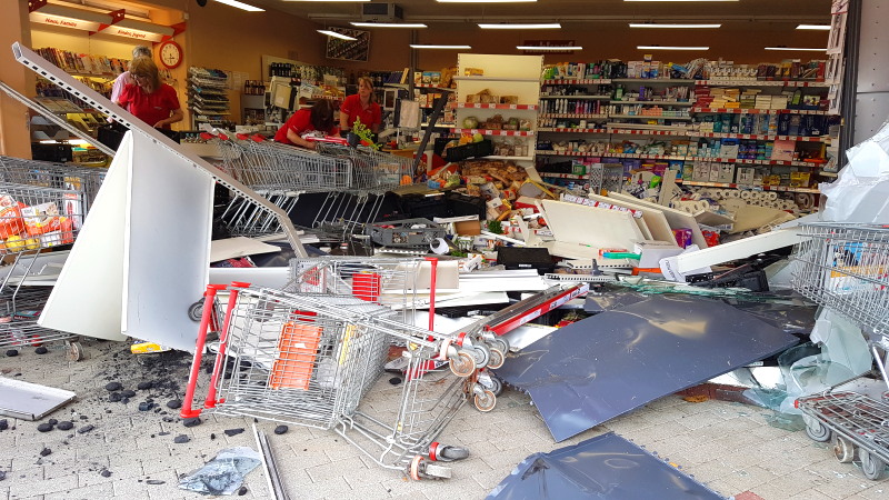 Nach einer Erstversorgung an der Unfallstelle wurden alle drei Personen in ein Krankenhaus eingeliefert. Die Inhaberin Martina Starke kam gerade aus dem Urlaub zurück, als Sie die Nachricht vom Unfall von Ihren Angestellten mitgeteilt bekam. Als Sie am Markt ankam traute sie Ihren Augen nicht. Überall lagen Trümmer herum und besonders schlimm, ihre Kunden verletzt unter den Regalen. Schnell war klar das der Fahrer unter erheblichem Alkoholeinfluss stand. Der Führerschein wurde sofort eingezogen und eine Blutuntersuchung von der Staatsanwaltschaft angeordnet. Viele Freiwillige erklärten sich sofort bereit zu helfen. Mit bloßen Händen oder mit Schaufel und Besen bewaffnet, wurden die Trümmer in wenigen Minuten zur Seite geschafft. Nach ersten Schätzungen wird der Gesamtschaden mit rund 50.000 Euro beziffert.