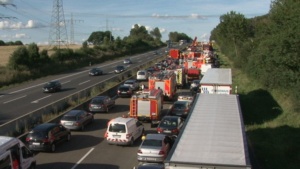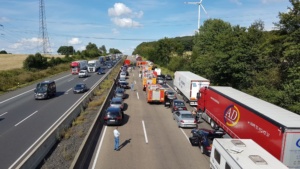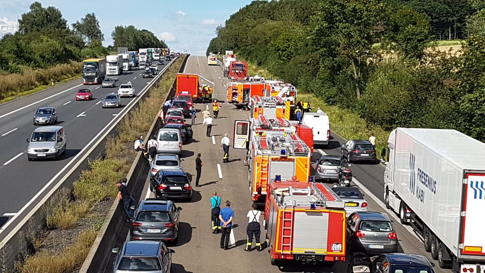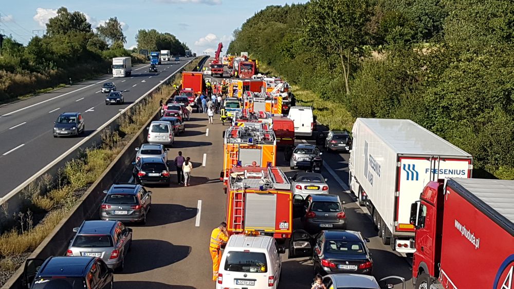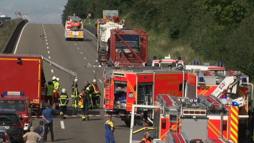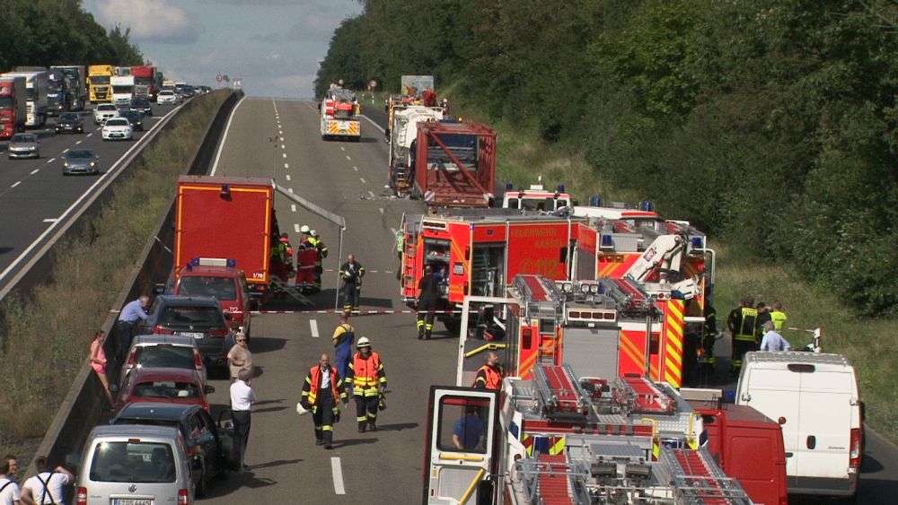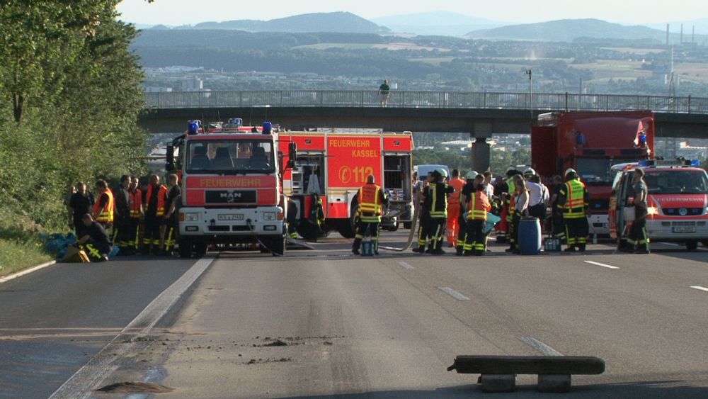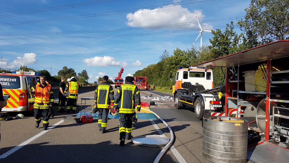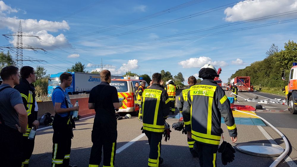 Es stellte sich heraus das aus bisher unbekannten Gründen ein Sattelzugfahrer einem stehenden Silofahrzeug aufgefahren war. Der Unfallfahrer wurde nach einer Erstversorgung an der Unfallstelle mit dem Rettungshubschrauber in ein Krankenhaus geflogen. Auch der Fahrer des Silozuges wurde so schwer verletzt, das er mit dem Rettungswagen abtransportiert werden musste. Das große Problem mit der Rettungsgasse bestand diesmal nicht, die Verkehrsteilnehmer hatten sich vorbildlich verhalten, so die Berufsfeuerwehr Kassel. Bei dem Gefahrstoff handelte es sich um ein Verbrennungsprodukt aus der Müllverbrennung welches auch als Gefahrgut deklariert werden musste. Nach Rücksprache mit dem Versender konnte die Feuerwehr dann die Schutzmassnahmen zurück fahren, da der Stoff nur in geringer Menge ausgetreten war. Die Autobahn musste komplett für mehrere Stunden voll gesperrt werden, für die Menschen im Stau sicherlich eine nervige Angelegenheit. Dennoch sahen es die meisten Verkehrsteilnehmer eher gelassen, denn einige erkannten das die ganze Angelegenheit noch längern dauern wird und haben sich kurzerhand eine Pizza liefern lassen. Wie es zu dem Unfall kommen konnte und wie hoch der Sachschaden sein wird, ist aktuell noch nicht bekannt. Gegen 20.30 Uhr war die Autobahn immer noch voll gesperrt.