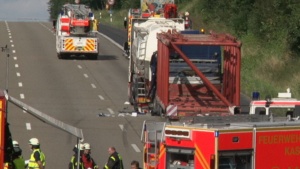 Kassel – Gegen 15.30 Uhr kam es am Mittwoch auf der A7 zwischen den Anschlussstellen Kassel Nord und Hann. Münden Lutterberg zu einem schweren LKW Unfall bei dem auch Gefahrgut im Spiel war. Sofort nach bekannt werden rückte der Gefahrgutzug Kassel, mehrere Rettungswagen und der Rettungshubschrauber Christoph 7 zu Einsatzstelle aus.