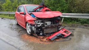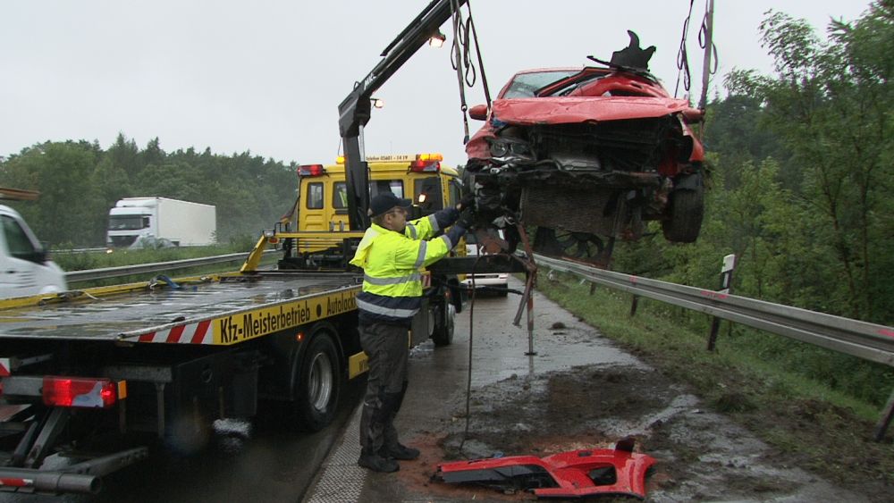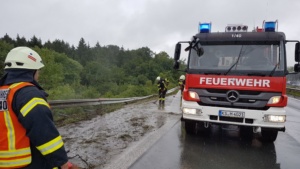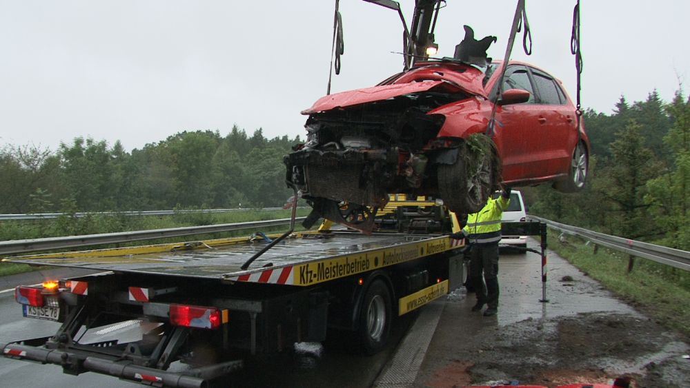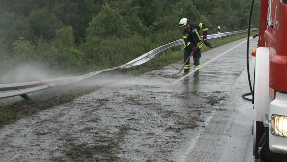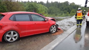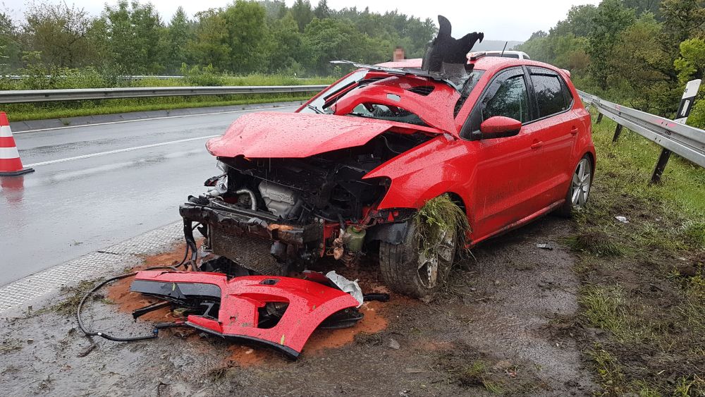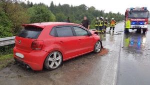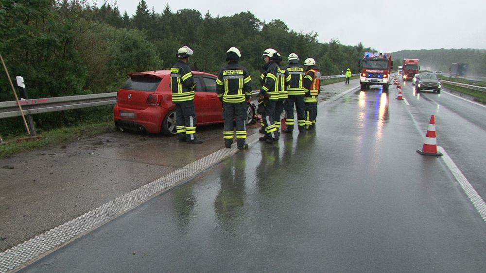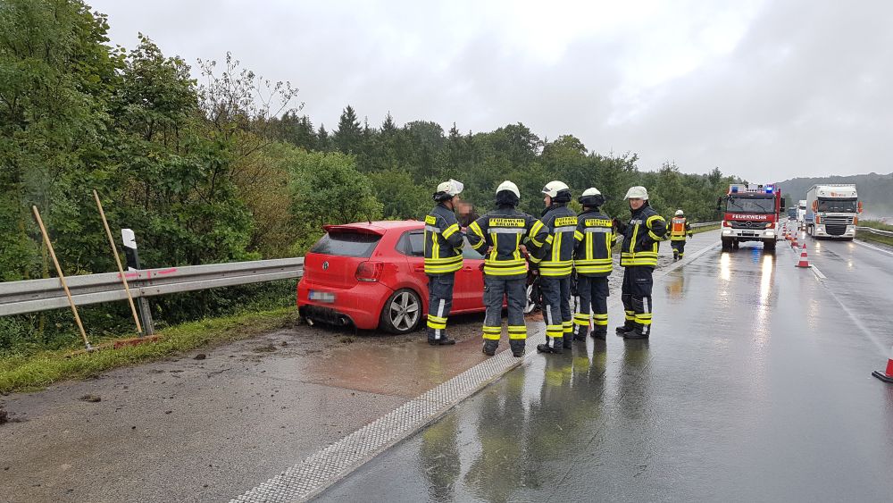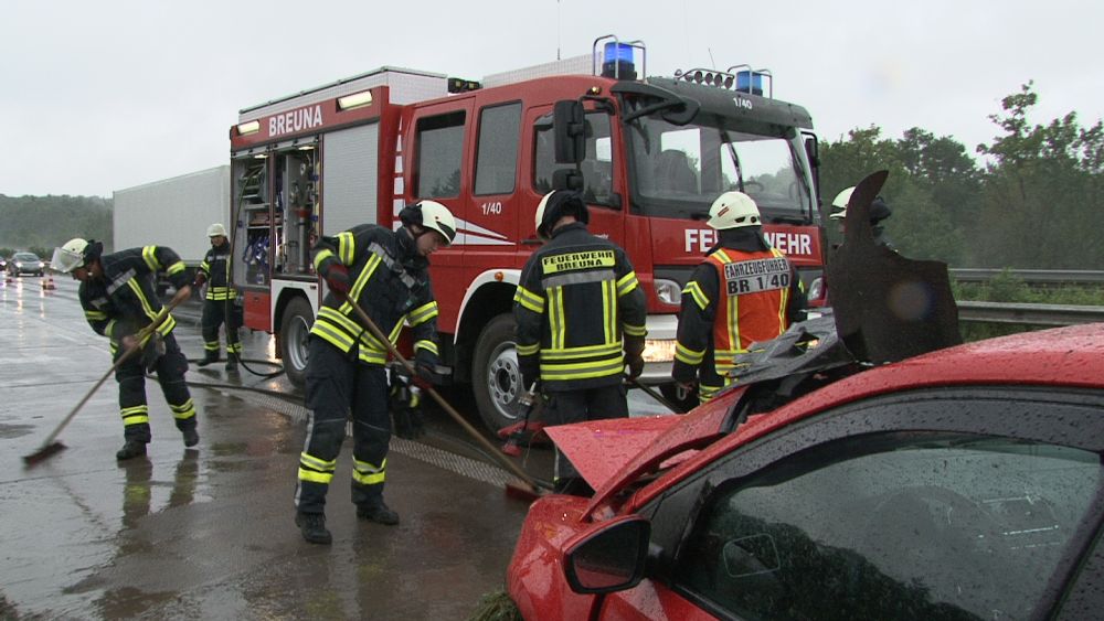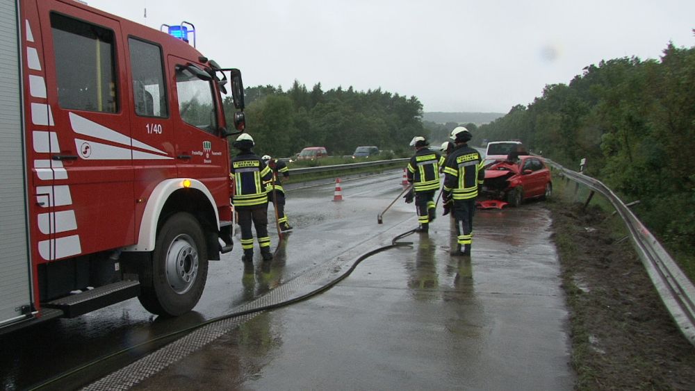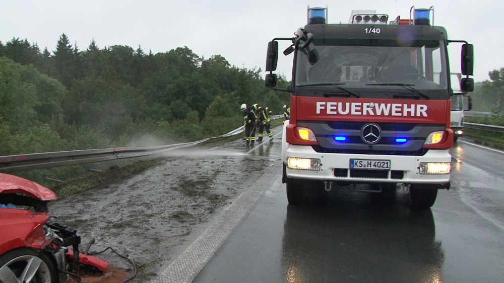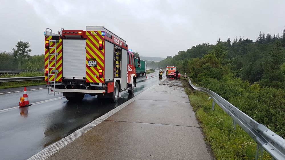 Eine mögliche Ursache könnte nicht angepasste Geschwindigkeit auf regennasser Fahrbahn sein. Der Fahrer wurde leicht verletzt in ein Krankenhaus eingeliefert. Die Feuerwehr Breuna sicherte die Unfallstelle ab und reinigte die Fahrbahn. Der Verkehr konnte einspurig an der Unfallstelle vorbei geleitet werden.