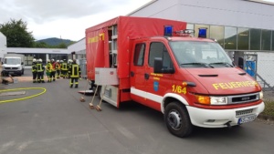 Zierenberg – Zu einem Gefahrguteinsatz am Donnerstag wurde die Feuerwehr Zierenberg und Umgebung gegen 18.40 Uhr alarmiert. Bei Rangierarbeiten auf einem Betriebsgelände an der Raifeisenstraße stieß eine Stablergabel ein Loch in einen 1000 Liter Behälter. Bei der Flüssigkeit sollte es sich zunächst um Bohröl handeln, es stellte sich jedoch schnell heraus, das es sich um nicht gefährliche Bohremulsion handelt, die zum Kühlen und schmieren eingesetzt wird.