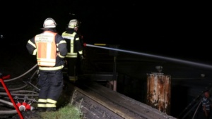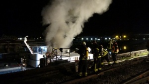 Schiff brannte auf dem Rhein bei Gustavsburg