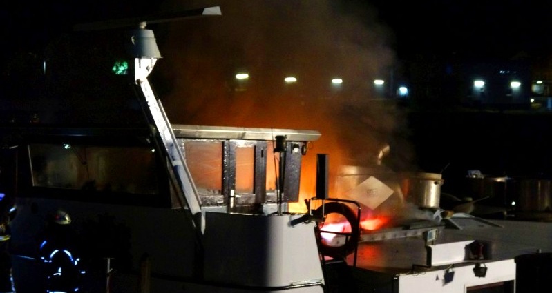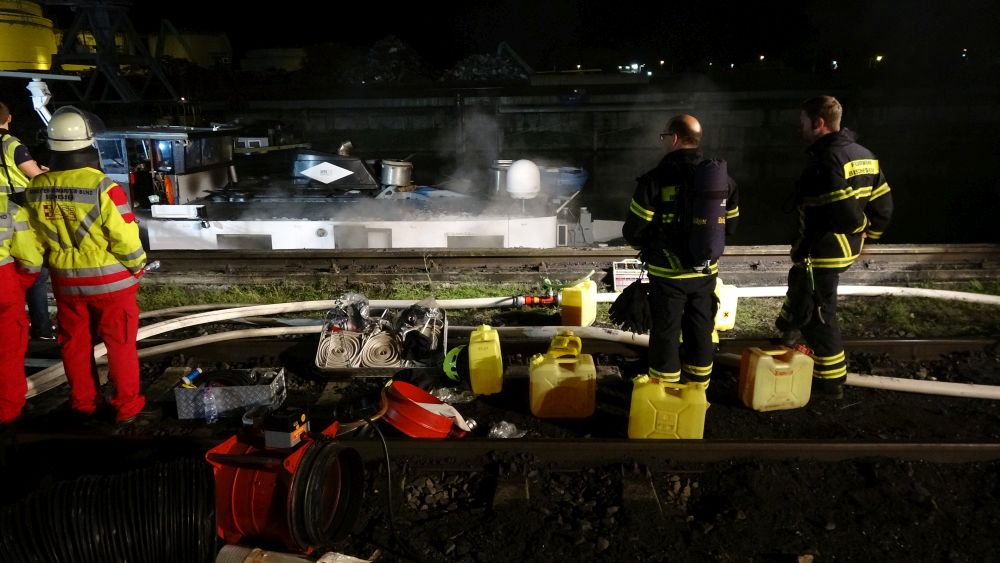 Der Schiffsführer informierte die Revierzentrale in Oberwesel, die über die WSP-St. Wiesbaden die Feuerwehr informiert. Das Schiff konnte durch die Besatzung rechtzeitig an seiner vorgesehenen Umschlagstelle an der Kaimauer der HTAG festmachen. Bei Eintreffen der Wasserschutzpolizei bekämpfte bereits die Feuerwehr den Brand, welcher hauptsächlich durch starke Rauchentwicklung sichtbar wurde. Ein kurzzeitiges Aufflammen konnte schnell unter Kontrolle gebracht werden. Gegen 01.30 Uhr bestand augenscheinlich keine Brandgefahr mehr, so dass der Einsatz beendet wurde. Eine Brandwache der Feuerwehr verblieb am Einsatzort. Weitere Ermittlungen erfolgen im Laufe des Vormittags.
