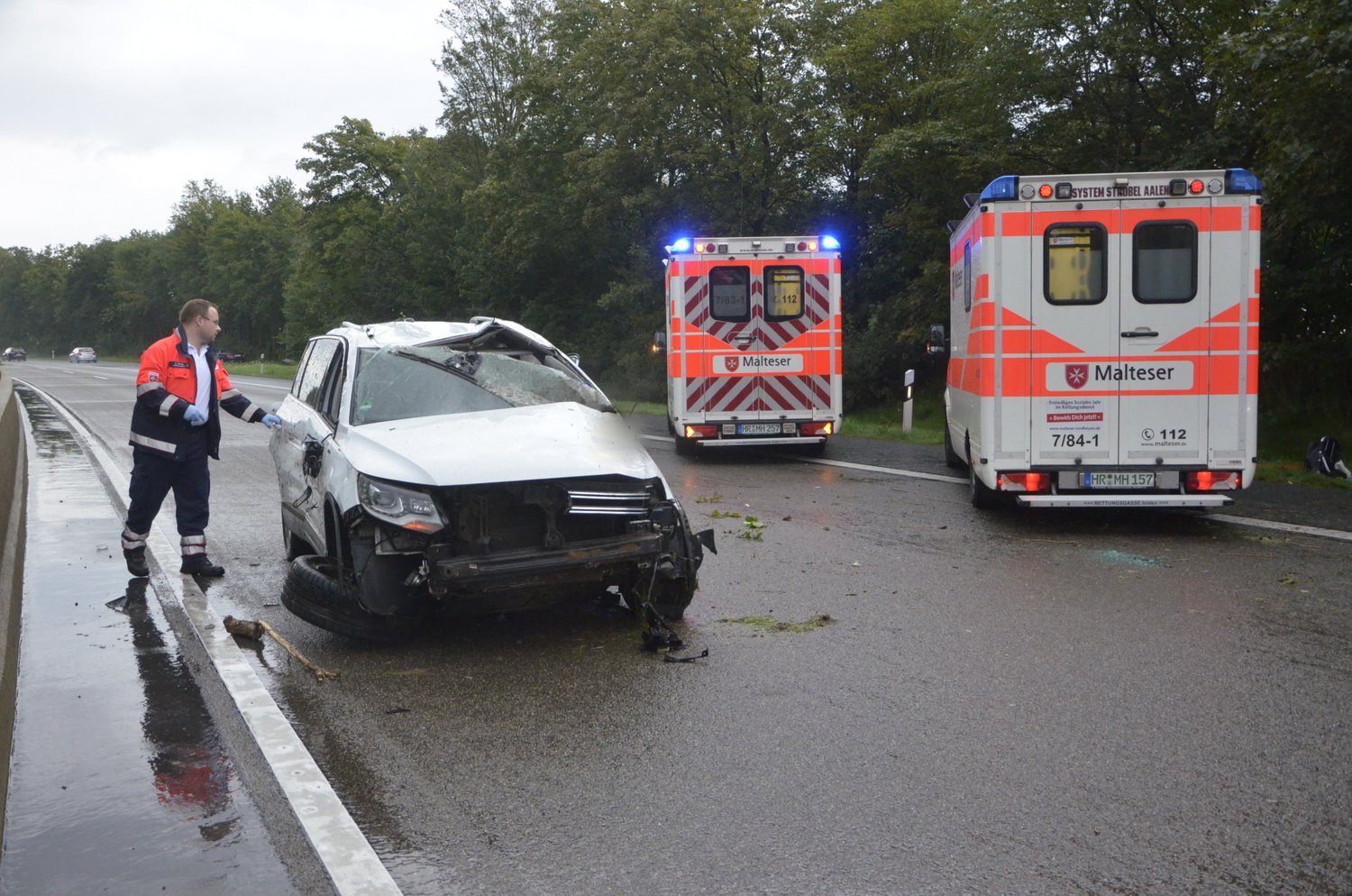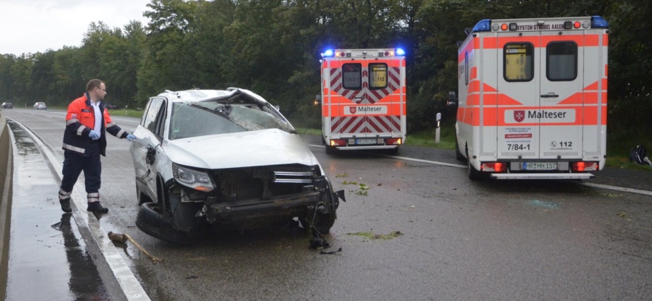 Gudensberg – Aquaplaning war vermutlich der Grund, warum am Samstagnachmittag ein 49-jähriger Mann aus Bad Wildungen auf der A49 im Bereich des Parkplatzes Sonnenborn die Kontrolle über sein Fahrzeug verlor und sich mehrfach überschlug. Im Verlauf kam er mit seinem Tiguan nach rechts von der Fahrbahn ab, querte einen Grünstreifen und krachte mit dem Fahrzeug gegen einen Baum. Dadurch überschlug sich das Fahrzeug und wurde zurück auf die Fahrbahn geschleudert, wo es auf der linken Spur auf allen vier Rädern zum Stillstand kam. Der 49 Jährige Familienvater sowie seine beiden 16 und 13 Jahre alten Kinder wurden glücklicherweise nur leicht verletzt und konnten das Fahrzeug eigenständig verlassen. Während sich zwei Rettungsteams der Malteser aus Gudensberg sowie der Notarzt aus Fritzlar um die Verletzten kümmerten, kam es durch die Vollsperrung der A49 zu einem leichten Rückstau. Teilweise konnte der Verkehr über den Parkplatz umgeleitet werden. Eine perfekt gebildete Rettungsgasse ließ die Rettungskräfte schnell am Einsatzort eintreffen. Am Fahrzeug entstand Totalschaden in Höhe von rund 20000 Euro. Die A49 war in nördliche Richtung für etwa eine Stunde voll gesperrt.