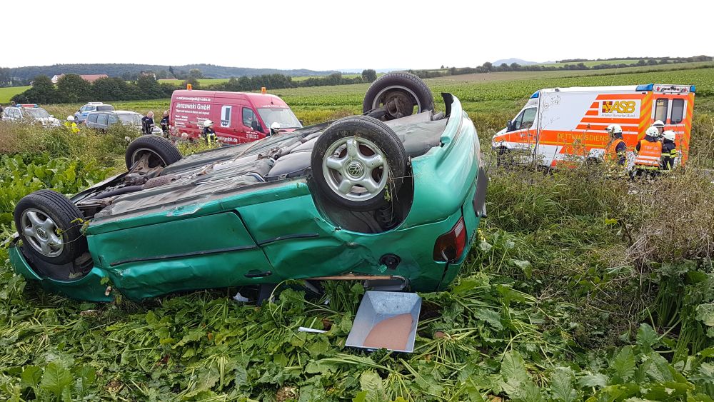 Das Fahrzeug blieb dann auf einem angrenzenden Feld auf dem Dach liegen. Die 19-Jährige konnte sich aus dem PKW selbst befreien und wurde dann von Ersthelfern versorgt bis die Einsatzkräfte an der Unfallstelle eintrafen. Nach einer Erstversorgung wurde die junge Frau in ein Krankenhaus nach Kassel eingeliefert. Die B83 blieb für den Einsatz rund eine Stunde voll gesperrt. Neben Polizei und Rettungsdienst war auch die Feuerwehr Grebenstein im Einsatz und nahm auslaufende Betriebsstoffe auf und sicherte die Unfallstelle ab.