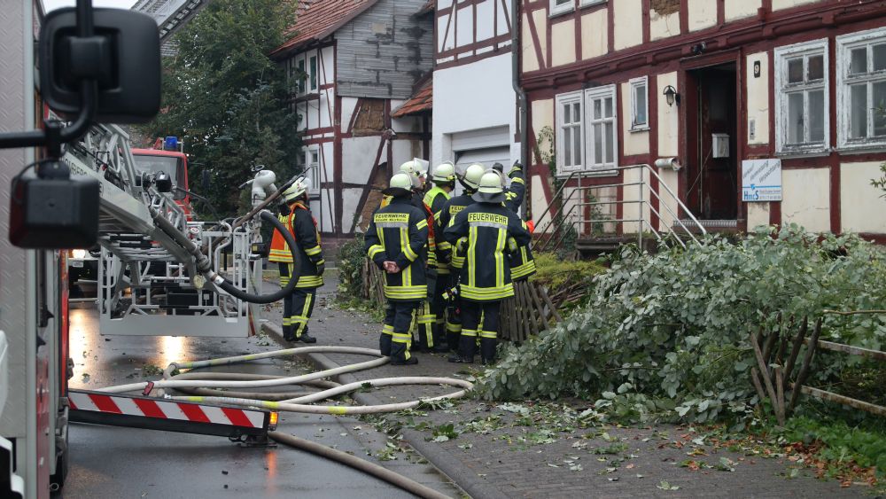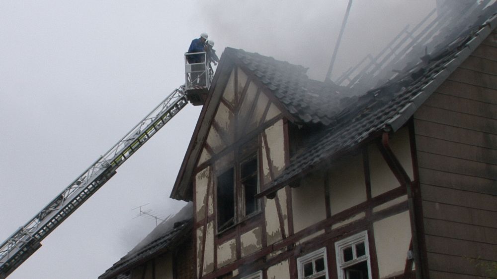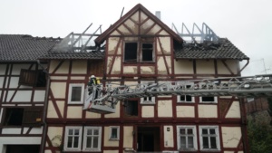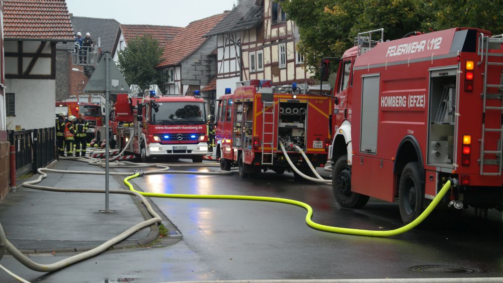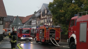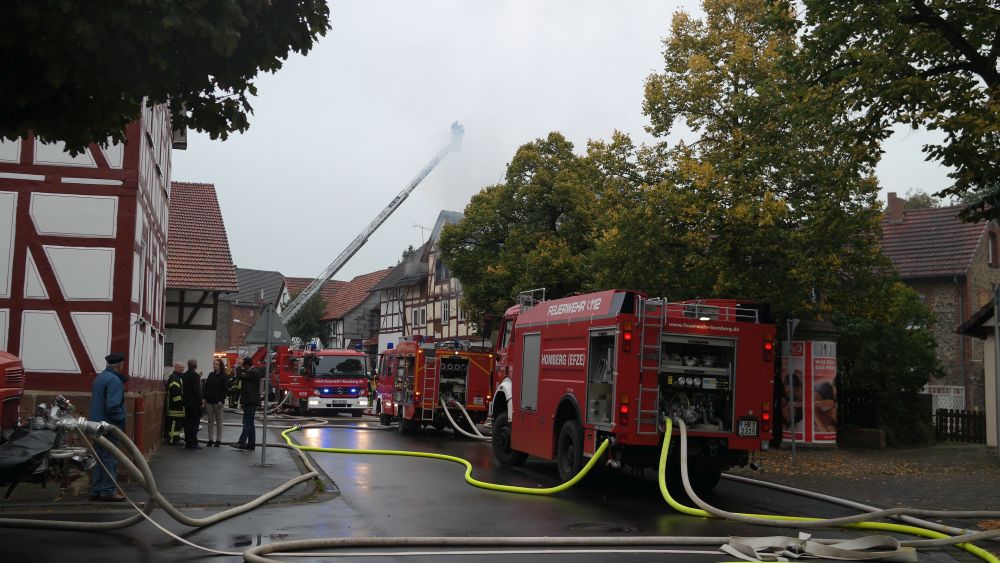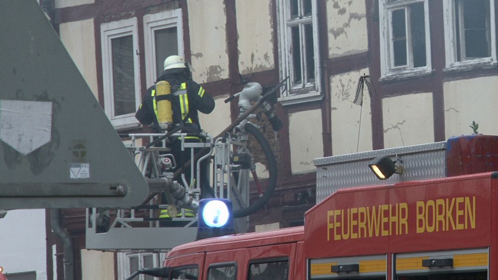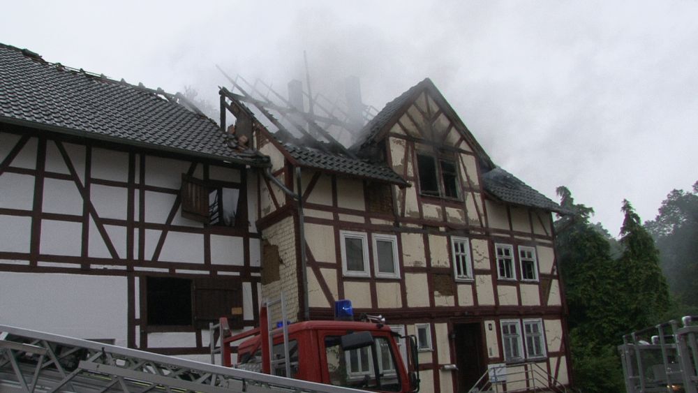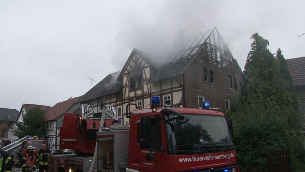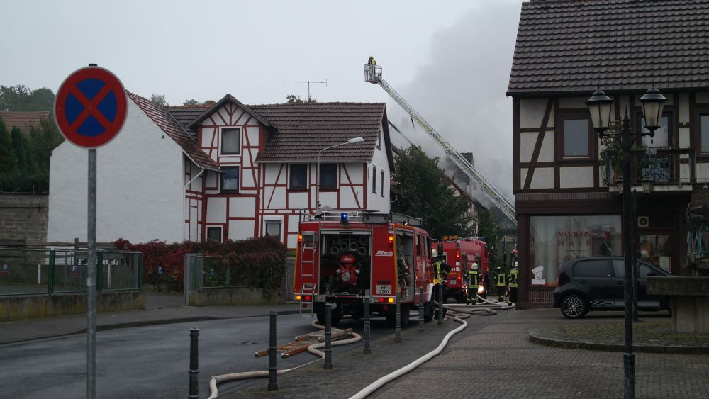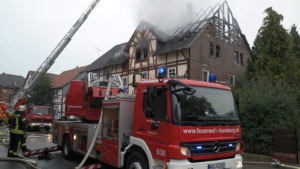 Borken – Gegen 07.30 Uhr wurde bei der Feuerwehr der Brand eines Gebäudes in Borken in der „Pferdetränke“ gemeldet. Die sofort zur Einsatzstelle fahrenden Einsatzkräfte fanden den Dachstuhl des Hauses im Vollbrand vor. Nach ersten Informationen der Polizei soll das Haus leer stehen. Hinweise auf mögliche Verletzte gibt es derzeit nicht.