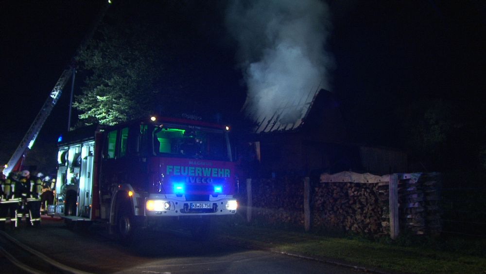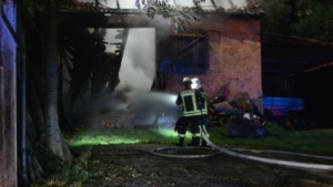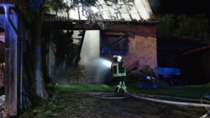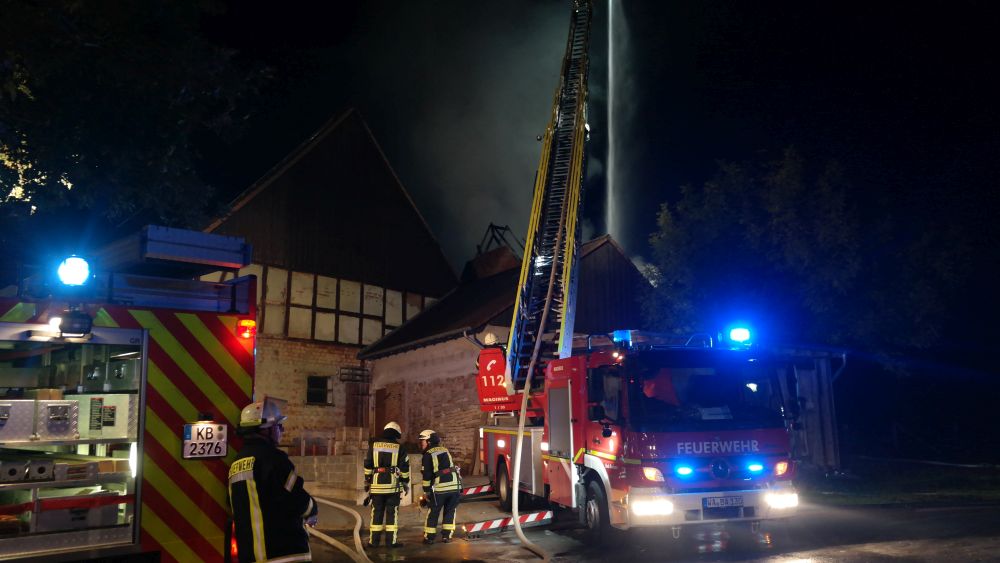 Diemelstadt – Am Donnerstagabend gegen 20.45 Uhr kam es zu einem Gebäudebrand in Diemelstadt. Bei Ankunft der Feuerwehr stand eine Scheune neben einem angrenzendem Wohnhaus bereits im Vollbrand. Die Flammen schlugen vier bis fünf Meter in die Höhe. Für das Haus bestand die Gefahr, dass das Feuer übergreifen könnte. Zunächst war nicht klar ob die Giebelwand aus Holz oder massiv gebaut wurde.