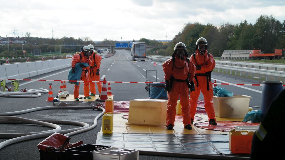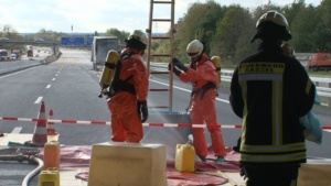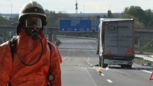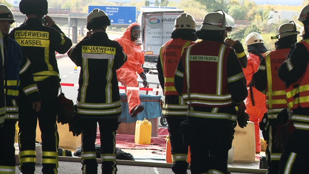 Die Sicherung des Granulats ist zwar relativ einfach, jedoch müssen Schutzanzüge getragen werden was die Sache sehr zeitintensiv macht, so Einsatzleiter Ralf Krawinkel zu Hessennews TV. Während des gesamten Einsatzes musste die Autobahn in Richtung Frankfurt komplett gesperrt werden. Gegen 16.00 Uhr waren die Einsatzkräfte immer noch mit der Sicherung des Gefahrgutes beschäftigt. Der Unfall sorgte für Kilometer lange Staus. Auch im Stadtgebiet kam es zu erheblichen Behinderungen. Wann die Autobahn wieder für den Verkehr frei gegeben werden konnte war noch nicht abzusehen. Über die Höhe des Sachschadens konnte die Polizei noch keine Angaben machen.