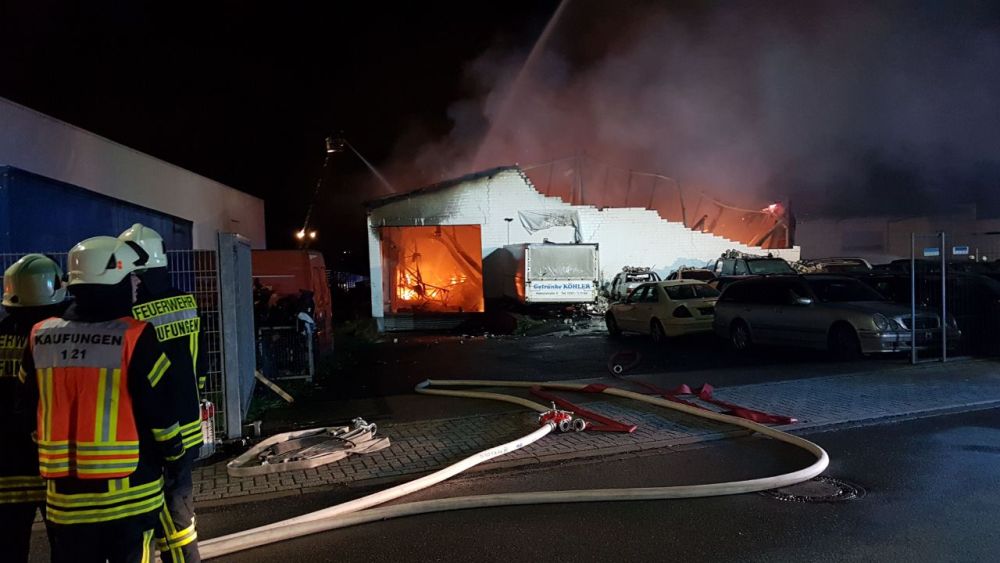Kassel – Am Donnerstagabend kam es gegen 19.30 Uhr zu einem Gebäudebrand in der Egon-Höhmann-Straße Ecke Kreuzweg in Niestetal-Sandershausen. Beim Eintreffen der Einsatzkräfte stand eine Lagerhalle bereits im Vollbrand. Bei dem Brandobjekt handelt es sich um eine zweiteilige Halle in der zu gleichen Teilen Lebensmitteln und KFZ Teile gelagert wurden. Das Feuer ist mittlerweile unter Kontrolle, jedoch ist das Gebäude komplett ausgebrannt.