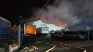 Der Sachschaden wird auf einen mittleren sechsstelligen Betrag geschätzt. Auf Grund der enormen Rauchentwicklung wurden Anwohner gebeten Fenster und Türen geschlossen zu halten. Wie es zu dem Brand kommen konnte ist aktuell noch unklar, die Polizei hat bereits die Ermittlungen aufgenommen. Personen wurden bei dem Brand zum Glück nicht verletzt. Eine in der Nähe befindliche Flüchtlingsunterkunft und weitere umliegende Gebäude wurden nicht in Mitleidenschaft gezogen. Gegen 21.30 Uhr konnten die polizeilichen Absperrmaßnahmen aufgehoben werden.