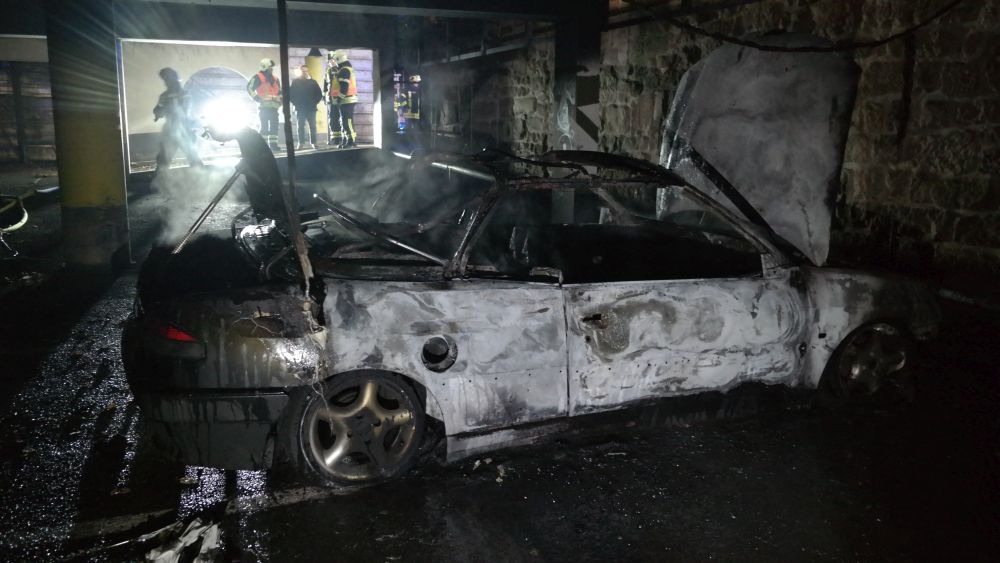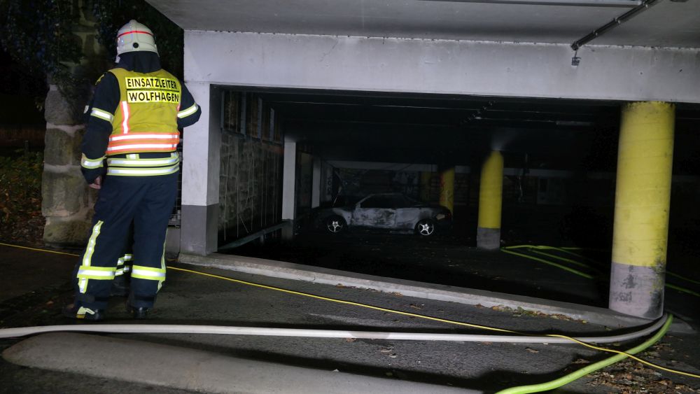 Wolfhagen – Am Dienstagmorgen gegen 04.50 Uhr wurde die Feuerwehr Wolfhagen zum Brand im Gebäude alarmiert. In einem Parkhaus in der Wilhelmstrasse soll ein Feuer ausgebrochen sein. Beim Eintreffen der Einsatzkräfte stellte sich heraus das ein PKW im Vollband stand. Mit zwei Trupps unter Atemschutz brachte die Feuerwehr den Brand sehr schnell unter Kontrolle.