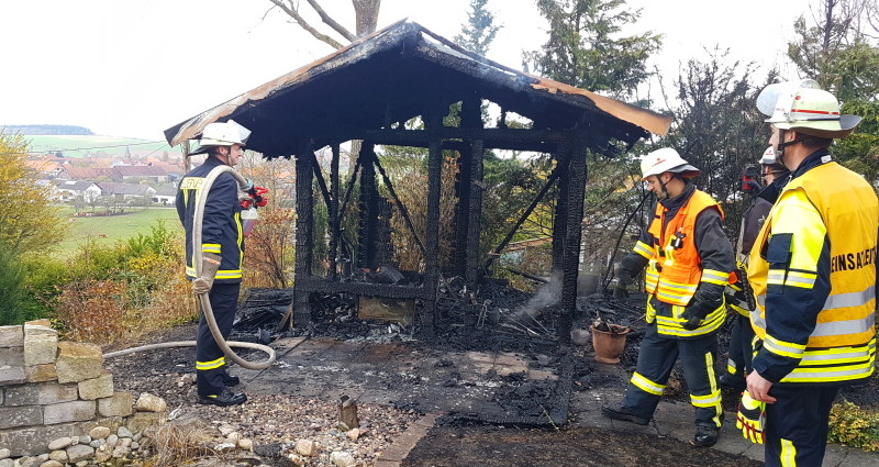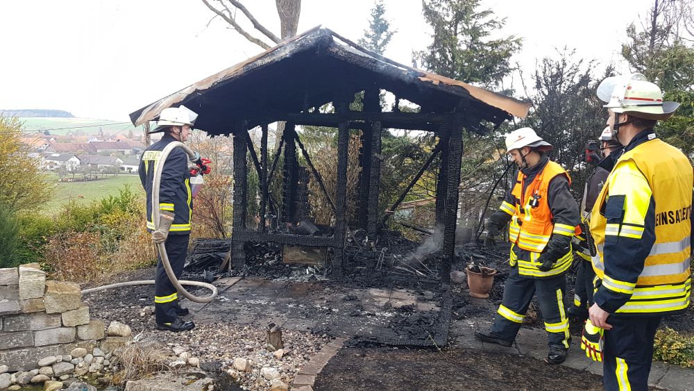 Basdorf – Am Donnerstag gegen 11 Uhr kam es in Basdorf in Waldeck Frankenberg zum Brand einer Gartenhütte. Nach ersten Informationen von der Einsatzstelle könnte bisher ungesicherten Informationen zur Folge eine defekte Teichpumpe für den Brand verantwortlich sein. Ein Kabel welches von einer Gartenhütte (3×3 Meter) Feuer gefangen hatte, entzündete offensichtlich auch die Laube. Beim Eintreffen der Feuerwehr stand sie bereits im Vollbrand und war nicht mehr zu retten. Durch die Hitzeentwicklung platzen an den daneben stehenden Wochenendhaus die Scheiben.