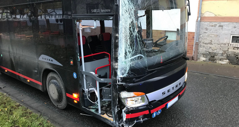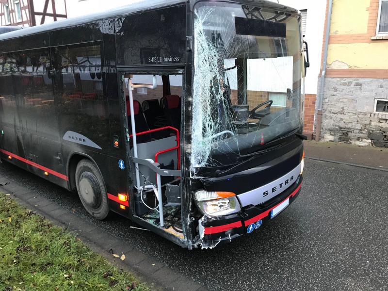 Lohra-Kirchvers – Ein mit sieben Fahrgästen besetzter Bus prallte am Freitagnachmittag (10.11.2017) gegen eine Laterne und eine Hauswand. Personen kamen bei dem Vorfall nicht zu Schaden. Der 38 Jahre alte Fahrer war gegen 15.45 Uhr auf der Straße „Am Langen Loh“ in Richtung Alternvers unterwegs und kam von der Straße ab. Er prallte zunächst mit seinem Fahrzeug gegen eine Laterne und anschließend gegen eine Hauswand. Insgesamt entstand ein Sachschaden von etwa 75.000 Euro.