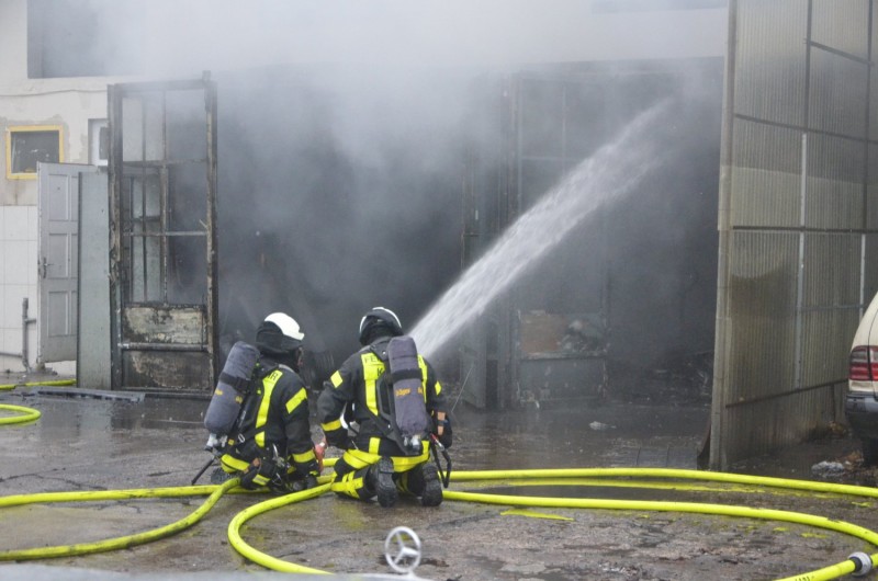 Es brennt eine 600 Quadratmeter große Halle eines Kfz-Betriebs. Die Halle stand in Vollbrand. Im Gebäude befanden sich bei Eintreffen der Feuerwehr keine Menschen mehr. Die Einsatzkräfte räumten die benachbarten Gebäude. Es wurde unter anderem über eine Drehleiter eine sogenannte Riegelstellung aufgebaut, um zu verhindern, dass der Brand auf benachbarte Gebäude übergreift. Gleichzeitig wurde eine umfassende Brandbekämpfung eingeleitet. Gegen 15:30 Uhr war das Feuer unter Kontrolle. Die Brandursache ist derzeit noch unklar.