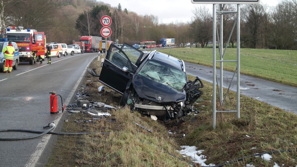 Am Freitagmittag gegen 13.00 Uhr kam es dann auf der L3215 – einer der möglichen Umleitungsstrecken auch noch zu einem schweren Verkehrsunfall zwischen zwei PKWs. Auf der Strecke zwischen Schauenburg und Breitenbach krachten aus bisher noch nicht geklärter Ursache zwei Fahrzeuge ineinander. Beide Fahrer wurden bei dem Unfall schwer verletzt. Während ein Patient mit dem Rettungswagen in ein Krankenhaus eingeliefert wurde, musste der zweit Verletzte mit dem Rettungshubschrauber abtransportiert werden. Da nicht klar war was passiert ist, wurde noch ein Gutachter zu Unfallstelle bestellt. Die Strecke musste bis etwa 15.00 Uhr voll gesperrt werden.