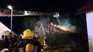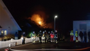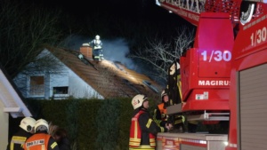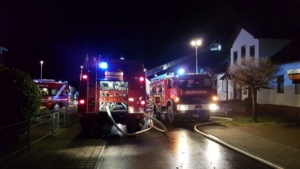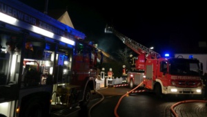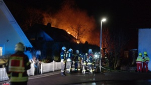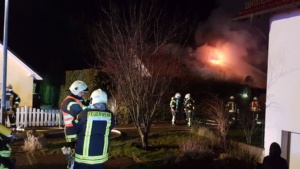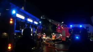 Gegen 03.00 Uhr war das Feuer aus und die Einsatzkräfte konnten sich mit Nachlöscharbeiten beschäftigen. Rund 90 Feuerwehrleute waren im Einsatz, um den Brand zu bekämpfen. Während der Löscharbeiten wurden drei Kameraden verletzt. Zwei konnten vor Ort behandelt werden, ein Kamerad wurde in ein Krankenhaus eingeliefert. Ob der Brand durch einen Feuerwerkskörper entstanden ist, konnte noch nicht geklärt werden. Die Kripo hat noch in der Nacht die Ermittlungen aufgenommen.