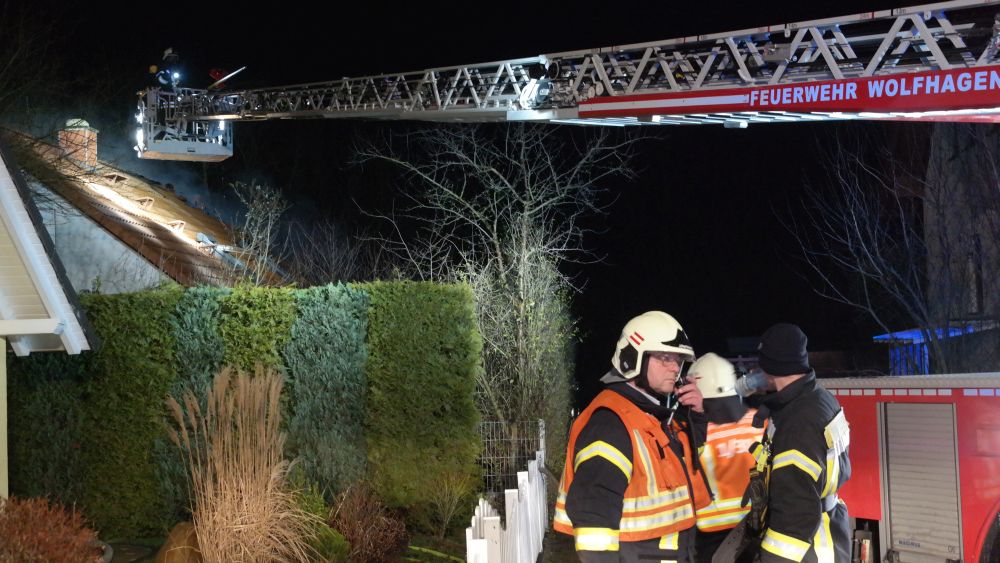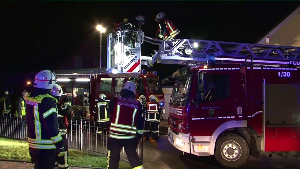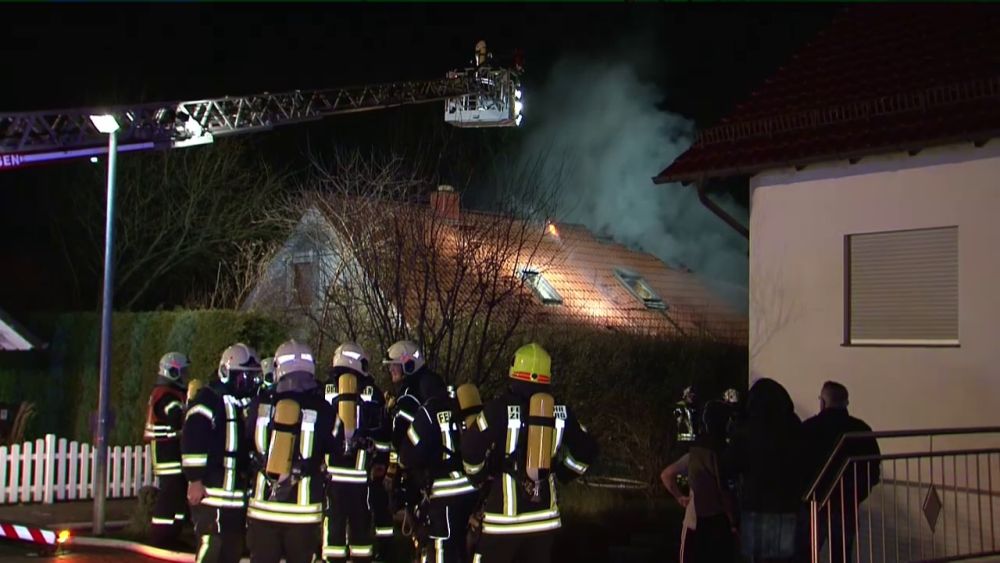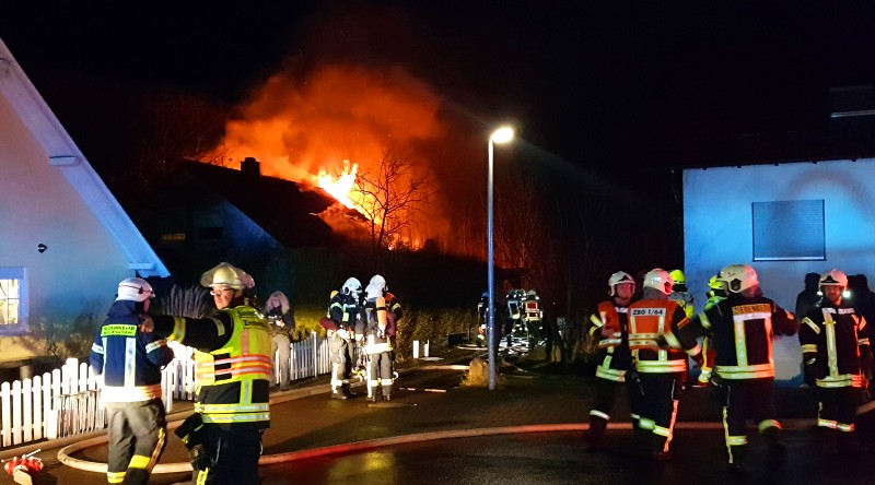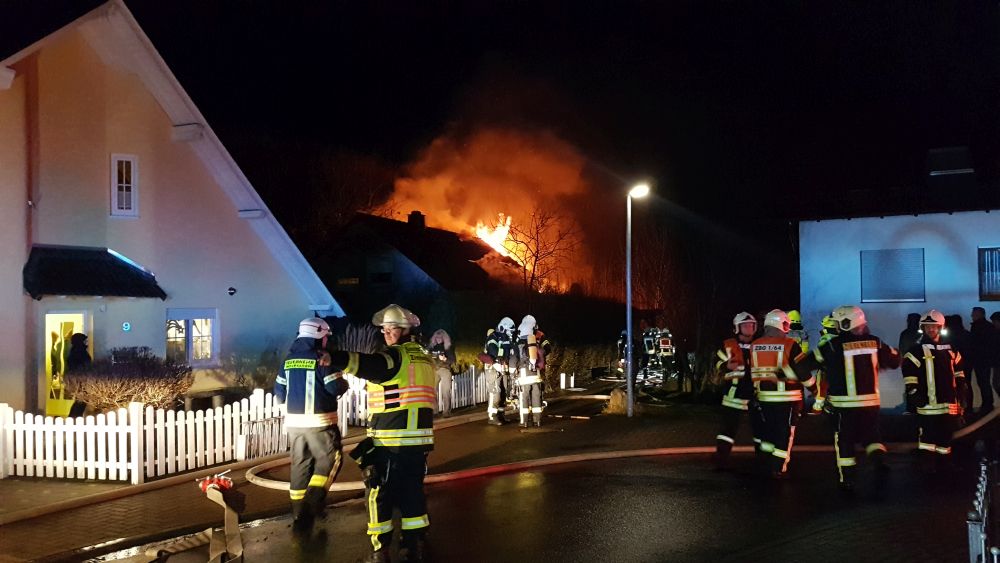 Gegen 03.00 Uhr war das Feuer aus und die Einsatzkräfte konnten sich mit Nachlöscharbeiten beschäftigen. Rund 90 Feuerwehrleute waren im Einsatz, um den Brand zu bekämpfen. Während der Löscharbeiten wurden drei Kameraden verletzt. Zwei konnten vor Ort behandelt werden, ein Kamerad wurde in ein Krankenhaus eingeliefert. Ob der Brand durch einen Feuerwerkskörper entstanden ist, konnte noch nicht geklärt werden. Die Kripo hat noch in der Nacht die Ermittlungen aufgenommen.