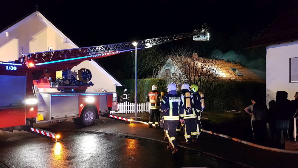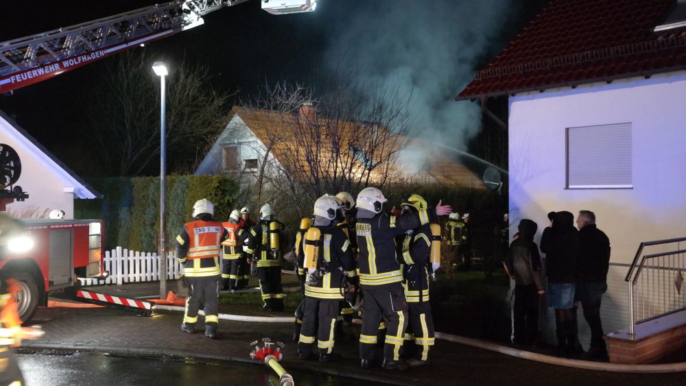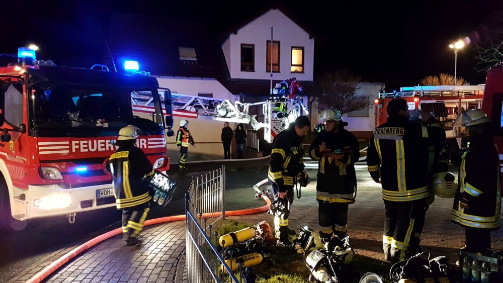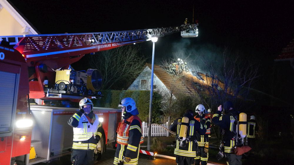 Zierenberg – In der Silvesternacht kam es gegen 01.15 Uhr in Zierenberg zu einem Brand im Gebäude. Die Flammen waren kilometerweit zu sehen. Beim Eintreffen der Feuerwehr stand zunächst ein Carport im Vollbrand. Das Feuer konnte dann jedoch auch auf den Dachstuhl des Hauses übergreifen. Sofort wurde auch die Drehleiter aus Wolfhagen nachgefordert. Um das Feuer löschen zu können, musste das Dach teilweise abgedeckt werden. Kurzzeitige Probleme mit der Wasserversorgung konnten jedoch schnell unter Kontrolle gebracht werden.