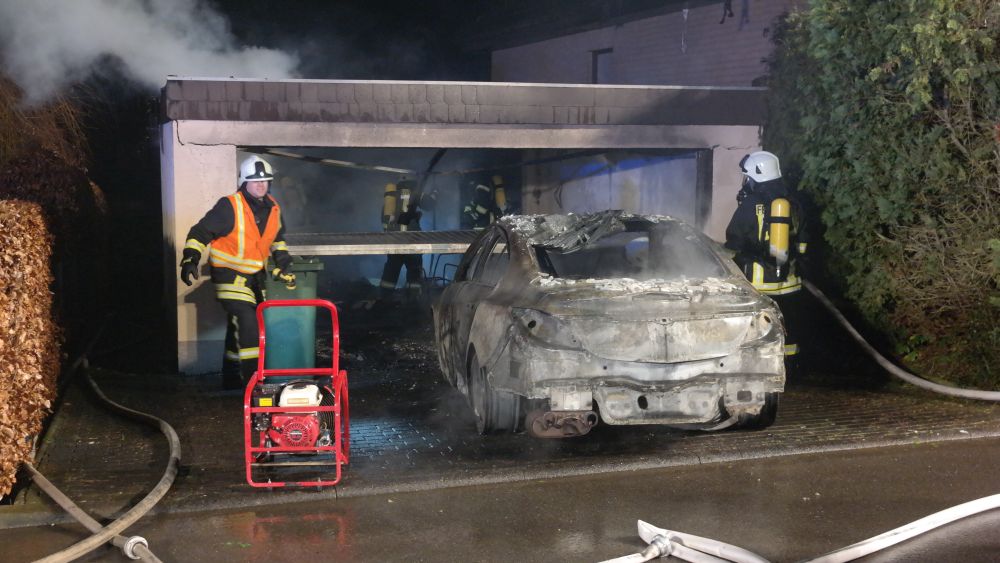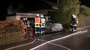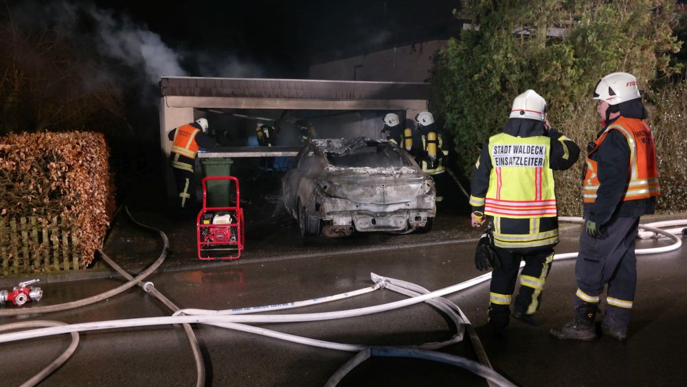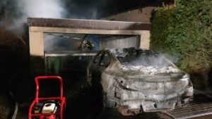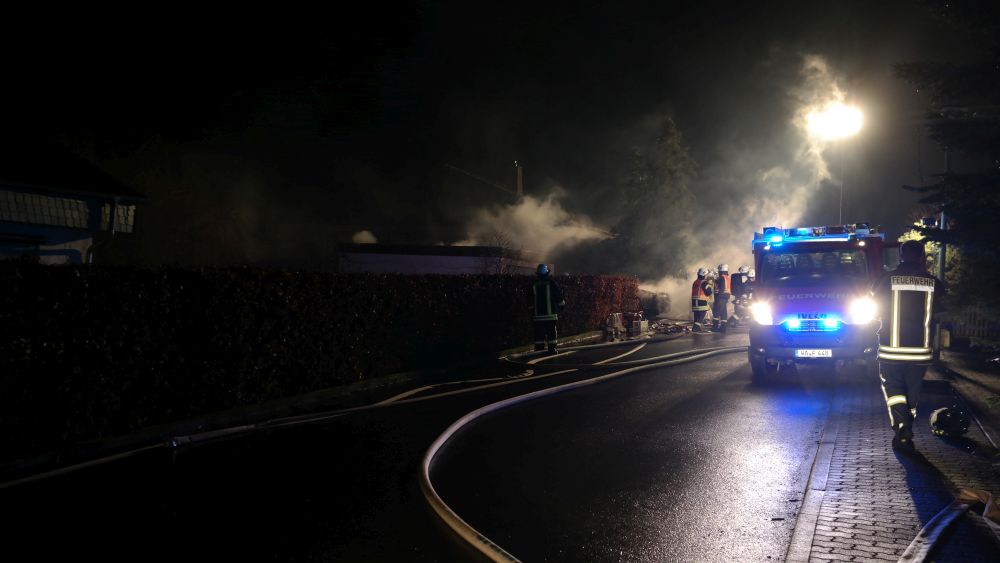 Höringhausen – In der Nacht von Mittwoch auf Donnerstag brannte in Höringhausen in der Straße „Am Steierköppel“ eine Garage mit PKW. Beim Eintreffen der ersten Einsatzkräfte gegen 02.30 Uhr stand die Garage im Vollbrand und drohte auf das Wohnhaus überzugreifen. Bis auf ein kleinen Schaden blieb das Wohnhaus zum Glück unversehrt. Mit einer Seilwinde wurde das Fahrzeug aus der Garage gezogen und abgelöscht. Die Brandursache sowie die Schadenshöhe sind derzeit unbekannt. Verletzt wurde niemand. Im Einsatz war die Feuerwehr Sachsenhausen und Höringhausen mit rund 35 Einsatzkräften.