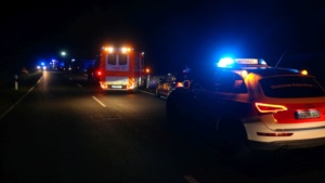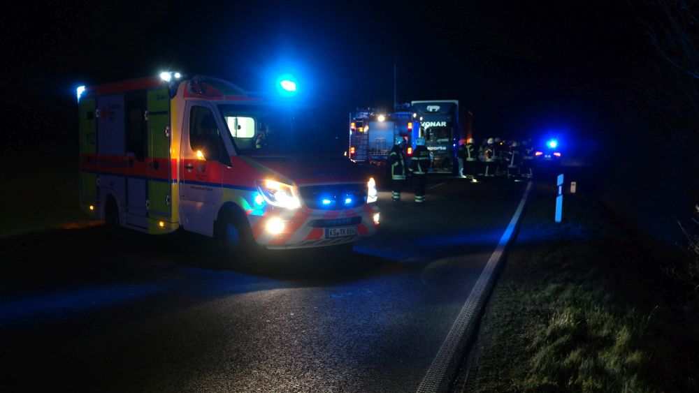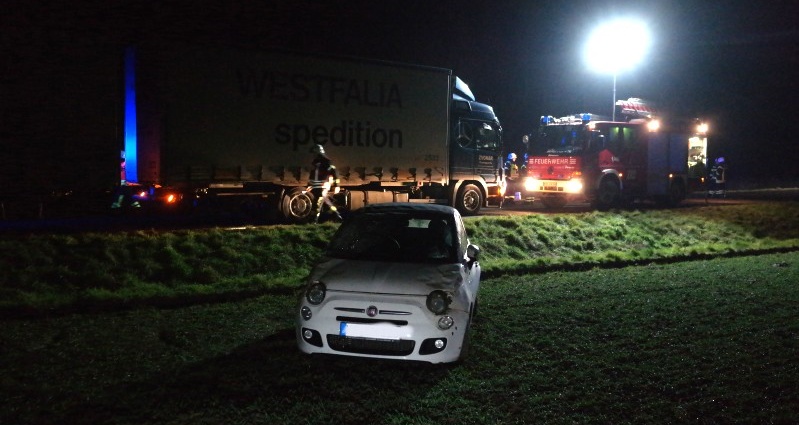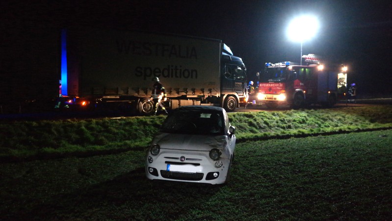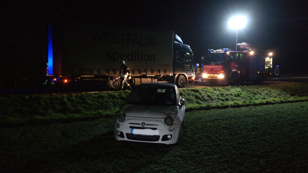 Der PKW streifte die Seite des LKW kam von der Fahrbahn ab, überschlug sich und blieb dann auf der Seite liegen. Ersthelfer konnten die Frau noch vor dem Eintreffen der Rettungskräfte aus dem Fahrzeug befreien. Die Feuerwehr Wolfhagen leuchtete die Unfallstelle aus und reinigte die Fahrbahn. Während der gesamten Einsatzdauer war die Landstrasse komplett gesperrt.