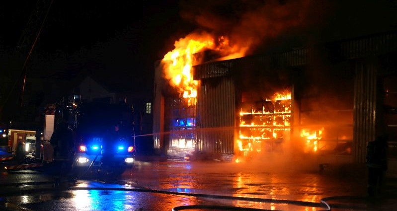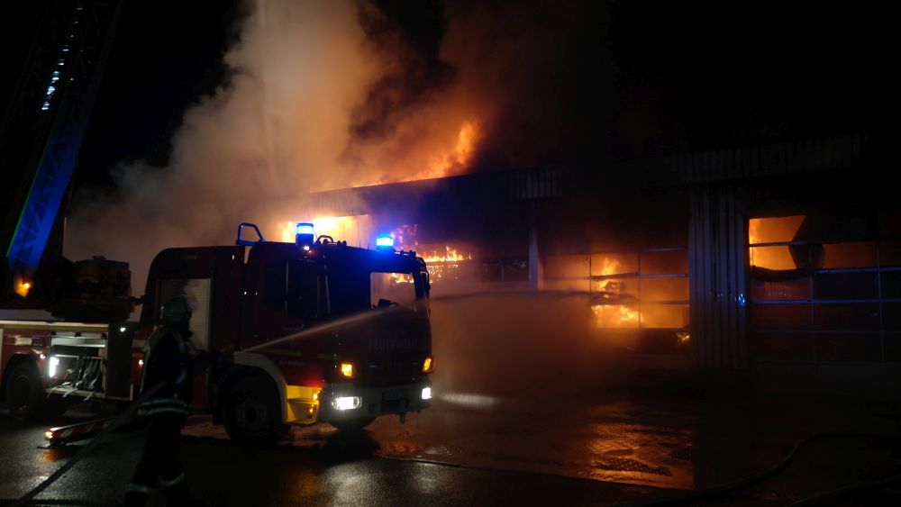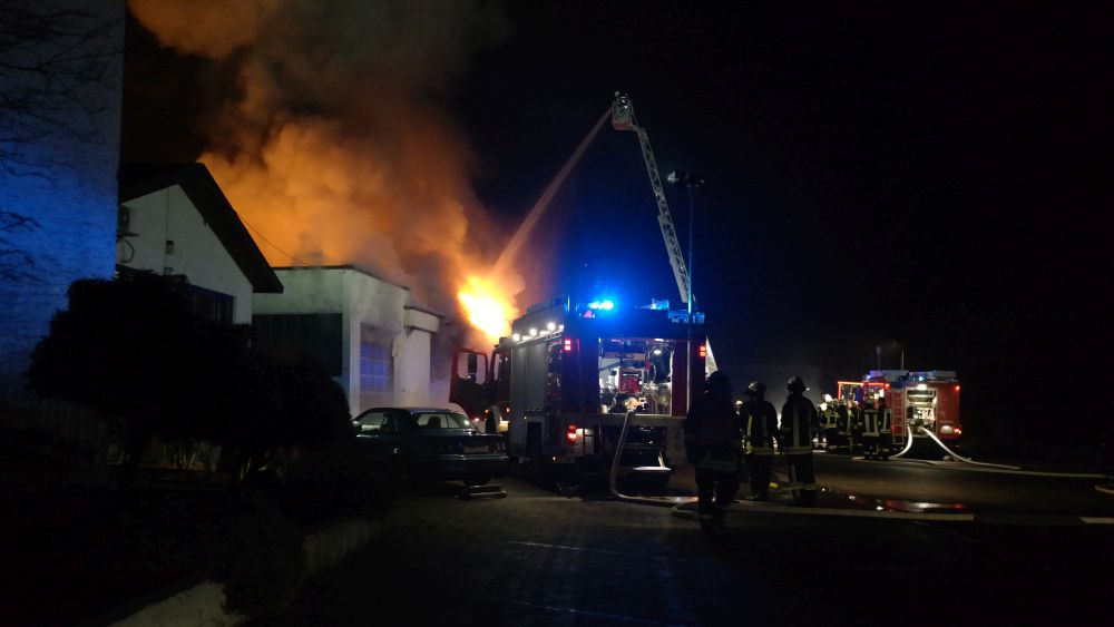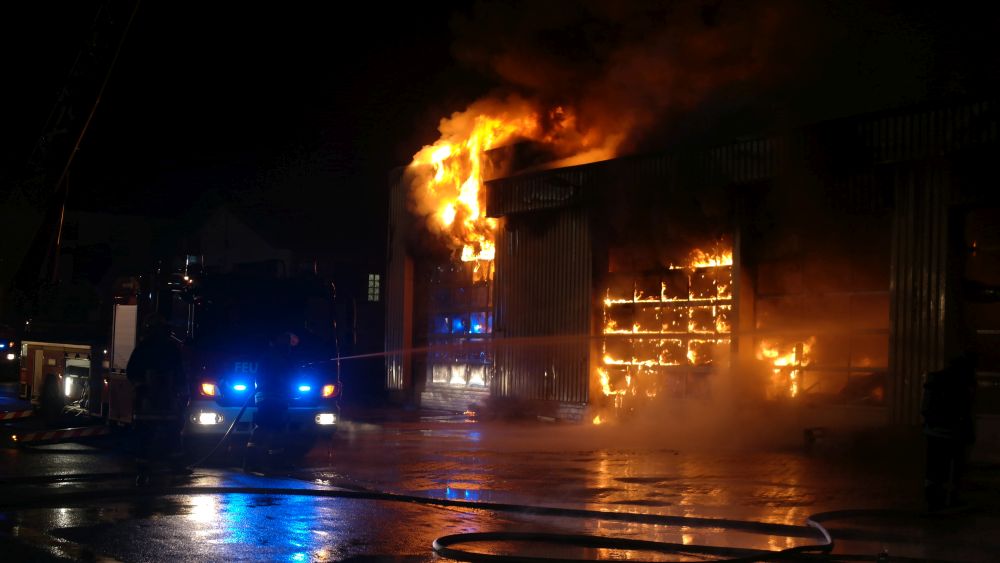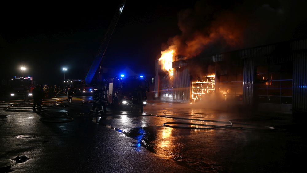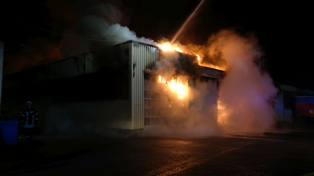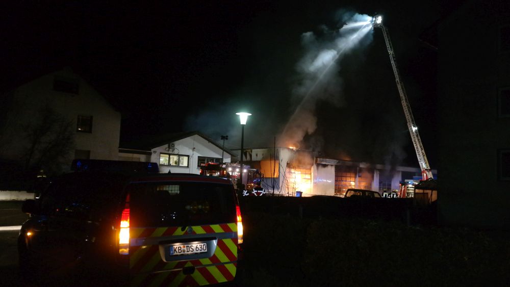 Diemelstadt – Gegen 4.50 Uhr wurde die Feuerwehr zum Brand im Gebäude in Diemelstadt Wrexen alarmiert. Beim Eintreffen standen bereits Teile einer Spedition im Vollbrand und die Flammen schlugen meterhoch in den Himmel. Nach ersten Informationen soll es vorab Explosionen gegeben haben. Nach Angaben eines Mitarbeiters handelt es sich hier um eine Werkstatt mit angrenzender Waschanlage.