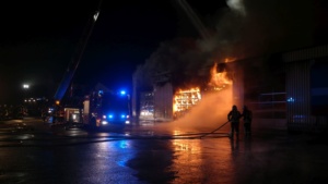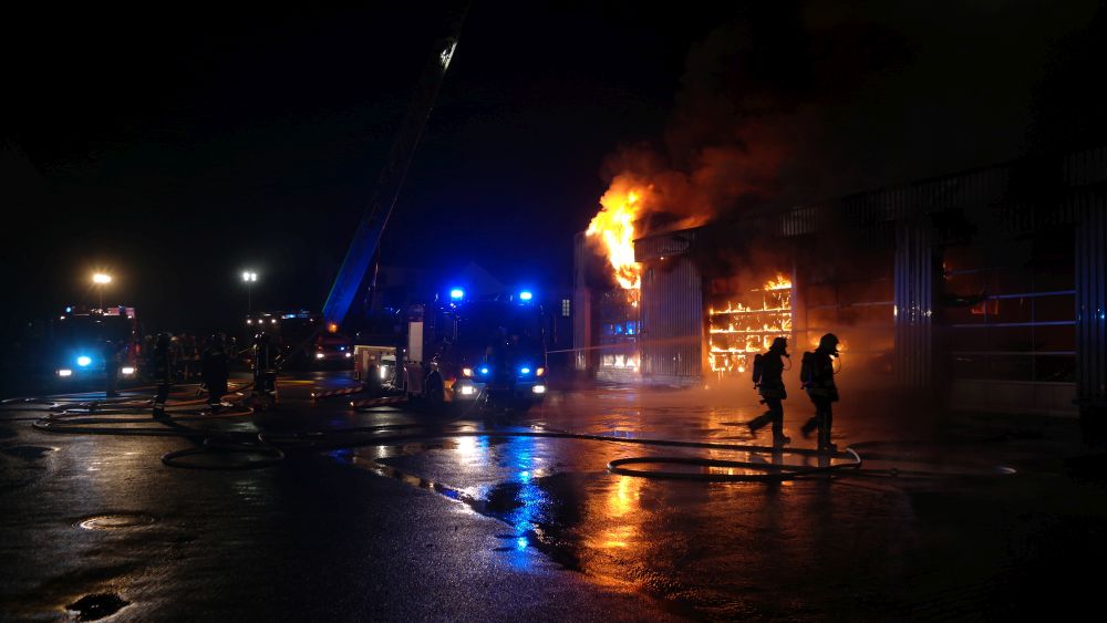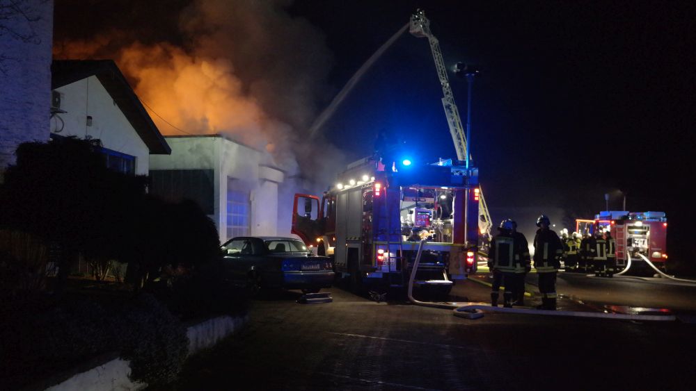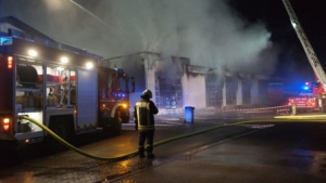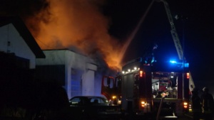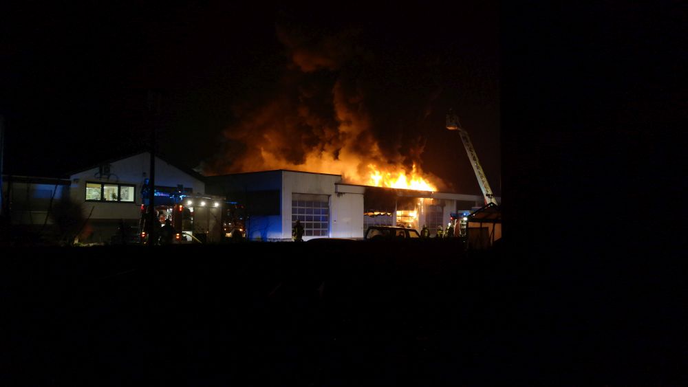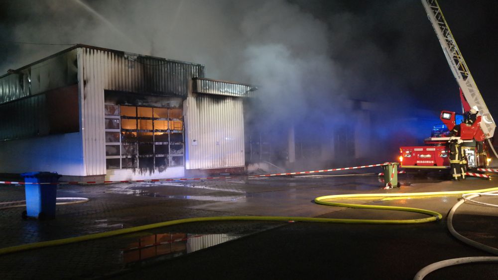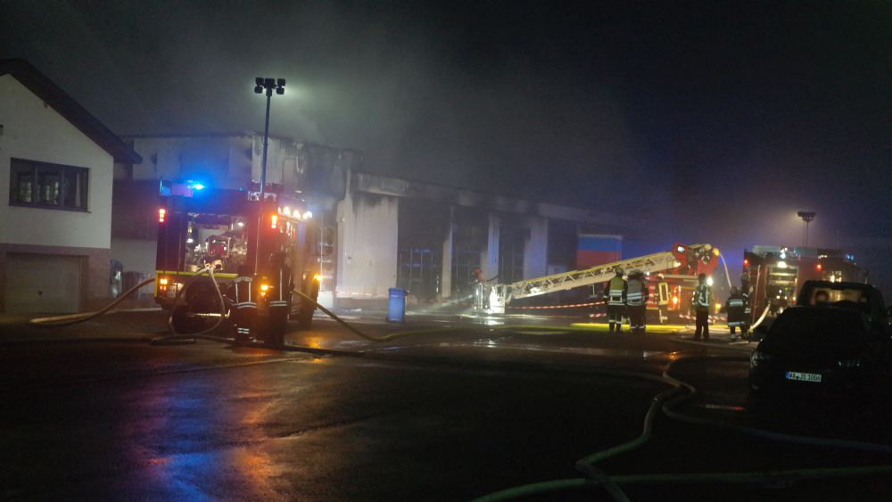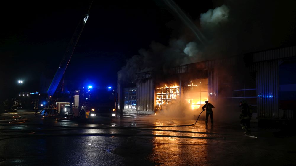 Diemelstadt – Gegen 4.50 Uhr wurde die Feuerwehr zum Brand im Gebäude in Diemelstadt Wrexen alarmiert. Beim Eintreffen standen bereits Teile einer Spedition im Vollbrand und die Flammen schlugen meterhoch in den Himmel. Nach ersten Informationen soll es vorab Explosionen gegeben haben. Nach Angaben eines Mitarbeiters handelt es sich hier um eine Werkstatt mit angrenzender Waschanlage.