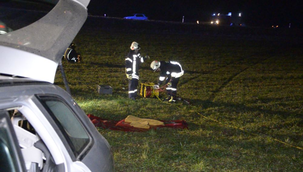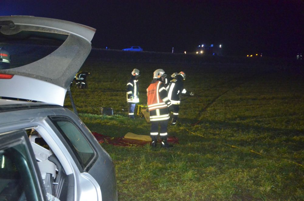 Der Badestädter querte zunächst die Gegenfahrbahn, fuhr anschließend eine steile Böschung hinab und kam nach rund 120 Metern auf einer Wiese zum stehen. Bis zum eintreffen der Rettungskräfte kümmerten sich Ersthelfer um den verletzten Mann. Aufgrund seiner Verletzungen entschied sich der Rettungsdienst den 24-Jährigen schonend aus seinem Fahrzeug zu retten. Dafür benutzte die alarmierte Feuerwehr Schere und Spreizer. Nach seiner Versorgung vor Ort wurde er vom Rettungsdienst in ein Krankenhaus gebracht. Da sich die Unfallstelle rund 60 Meter abseits der Straße befand, musste die Einsatzstelle großflächig ausgeleuchtet werden. Am Fahrzeug entstand vermutlich Totalschaden in unbekannter Höhe. Die B251 war während der Rettungs- und Bergungsmaßnahmen für rund zwei Stunden voll gesperrt.