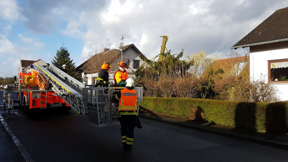 Nordhessen – Sturmtief Friederike hat den Feuerwehren in Stadt und Landkreis Kassel jede Menge Arbeit beschert. Ab 13 Uhr hatte das Hauptwindfeld Nordhessen erreicht und für zahlreiche Einsätze, gesperrte Straßen und die Einstellung des gesamten Tram- und Zugverkehrs gesorgt. Die Feuerwehren in Stadt und Landkreis hatten bislang insgesamt rund 300 Einsätze zu bewältigen. Zwischen 12 und 17 Uhr verzeichnete die Leitstelle der Feuerwehr 60 Einsatzstellen in der Stadt und 236 im Landkreis. Im Einsatz waren zirka 160 Männer und Frauen der Berufsfeuerwehr Kassel, aller sieben Freiwilliger Feuerwehren der Stadt Kassel sowie mehrere hundert Einsatzkräfte der Freiwilligen Feuerwehren in allen Städten und Gemeinden des Landkreises.