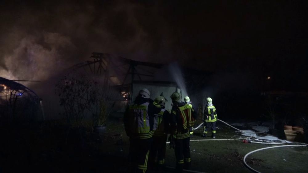Eschborn – Gegen 22:30 Uhr wurde die Feuerwehr Eschborn, Schwalbach und Bad-Soden in die Feldgemarkung nahe der Feuerwache Eschborn alarmiert. Ein nicht genutztes Gewächshaus einer ehemaligen Baumschule stand komplett in Flammen. Mehrere Propangasflaschen waren dort noch gelagert. Wie es zu dem Brand kommen konnte, ist aktuell noch ungeklärt.